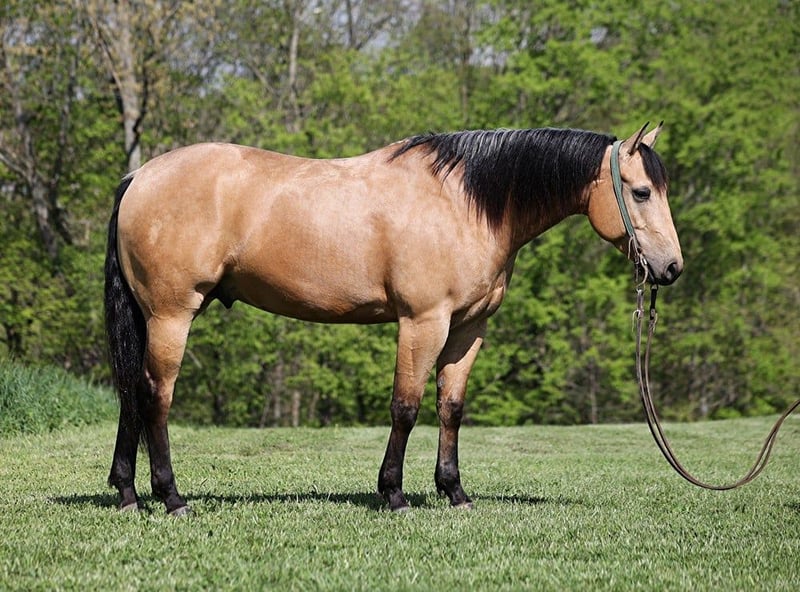 Consigned to Cowgirl Cadillacs in Sheridan, WY. Sales June 14-15th. You can bid online, phone bid or bid in person! School is out and check out STE SHINING DIAMONDS report card; he gets an “A” in every category while being all “B’s”… BIG, BEAUTIFUL, BRAINS, BROKE and BUCKSKIN!!! Shiner is a stout built 15.2hh+, 5 year old, golden buckskin, registered AQHA gelding! He has a great pedigree with MR RED BARON, TWO EYED RED BUCK and SHINING SPARK on his papers. Shiner has done it all while working at the feedlot, from sorting, to roping/doctoring, to loading trucks and penning. He is no stranger to the bright lights, loud speakers and crowds as he has been hauled to ranch rodeos and competed in every event. He has done team sorting competitions and Shiner has been started out of the roping box. He has had reining training and would make an excellent horse for ranch shows. Shiner is a pretty boy but he likes to get out on the trails and get dirty as well! He has been rode in rough, rocky country with steep elevations. He takes his time and picks where each foot goes as careful and thoughtful as a horse could be. He will cross deep water, boggy mud, slick rocky surfaces and ease over deadfall. Shiner is a laid back, gentle type of horse that is totally content to mosey along down the trails with the kids riding him and loves going on trail rides. He will cross creeks, ditches, logs and navigate rough rocky areas. He is safe riding through town and in all types of traffic. He has a smooth jog, a very nice lope, a good stop, spins both ways, sidepasses and backs with ease! Shiner has been exposed to all kinds of wildlife and is not spooky. He has a lot of personality, he loves attention and has been ridden all over our ranch by the kids and he is sure to suit riders of all ability levels! Shiner is a horse that can do any job that is asked of him, do it with ease and look good while doing it! Grab your pen and paper, get ready to give him your own report card… We believe that you will give him all A’s just as we did!