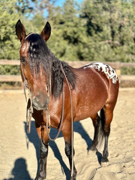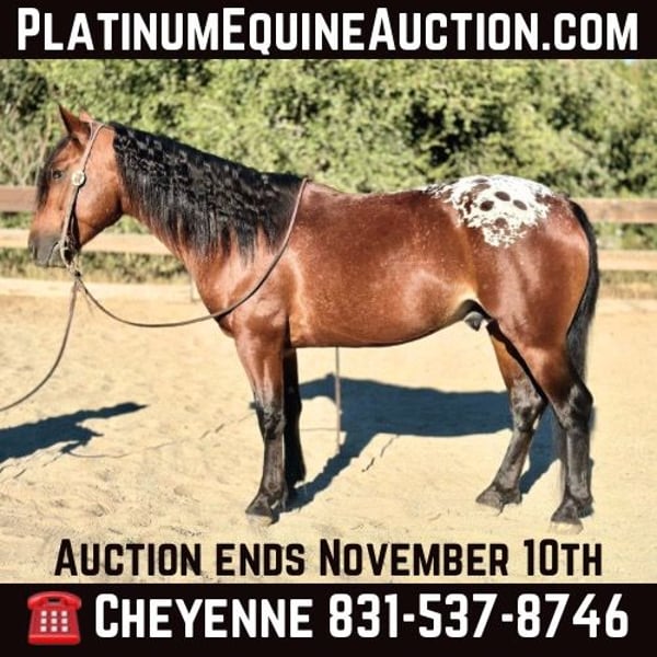 ONLINE AUCTION Place your bids at www.PlatinumEquineAuction.com Starting Bid $3500 Auction ends November 10th, 2024 Need a new saddle? Check out White Rock Saddles on our website or Facebook! Loki is a 5yr old Appaloosa cross, standing at 13.2HH. This guy may be the size of a pony but his deamor and handle are all horse! If he doesn’t make you drool looking at him with those luscious locks his kind heart and willing to please personality will!! Loki has been rode all over the trails and is very familiar with wildlife, vehicles and pedestrians. He takes it all in stride and always on his best behavior. He has smooth gaits for his little stride, and gives to pressure, both in the bridle, as well as leg pressure. He pivots his shoulders, side passes, and reverses all at a light touch. Lopes each way very effortlessly and has an amazing collected stop. He’s easy to catch, lets you clip and bathe him no problem. He stands quietly for the farrier and loads in any trailer without hesitation. We have carried the tarp and flag on him and he could care less. He has a more whoa than go type of way about him, but he will go anywhere you want without having to always plug on him. This little guy has all the potential in the world to go any direction his new owner would like to finish him out in! Trail course competitions, versatility shows, or I also think he would make an exceptional English pony! He’s calm, and gentle, suiting the entire family or lesson programs! Don’t miss out on a rare pony like Loki! He is located in Bitterwater California. For more information or to schedule a time to come see him please contact Cheyenne Rey 831-537-8746. ONLINE AUCTION Place your bids at www.PlatinumEquineAuction.com Starting Bid $3500 Auction ends November 10th, 2024 Need a new saddle? Check out White Rock Saddles on our website or Facebook!