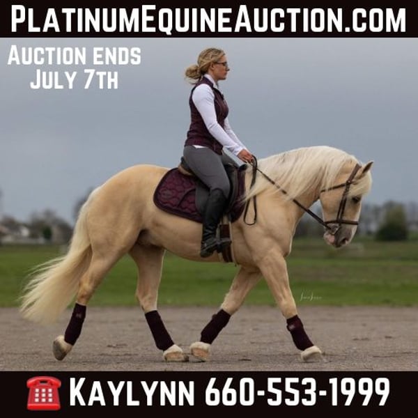 ONLINE AUCTION Place your bids at www.PlatinumEquineAuction.com Starting Bid $3500 Auction ends July 7th, 2024 Need a new saddle? Check out White Rock Saddles on our website or Facebook! We all loved playing with Breyer Horse’s growing up- here is your chance to have a real life one in your barn! “Breyer” is a 5 year old, 14.2 hand registered American Cream Gelding. This rare breed is known for their kind, drafty demeanor and lovable personalities. Breyer is politely in your pocket, he loves attention. A very respectful boy, he genuinely enjoys being around people and is a barn favorite. Breyer is easy to get along with and uncomplicated to ride. He collects up soft in your hands, eases around at a neck rein & has nice stop. Picks up his leads, moves off leg pressure & light mouthed. He has beautiful trot & comfortable extended walk/lope- you’ll enjoy the hours spent riding this guy. Breyer has been used at the sale barn but his primary occupation has been as a trail horse. Nothing phases this handsome gelding- flapping tarps, running water, etc. Not a dull horse by any means and is a forward mover. Breyer is very sure footed, aware of his surroundings, he is gentle & safe! He has also been ridden English & been taken over jumps- he shows a lot of promise in that direction. With his willing demeanor & eagerness to please, he will make a great show horse. Want to take a drive to town? Hook Breyer to your cart & make a day of it! He is fantastic to harness & hook. If you can hold the reins you can drive him. He is traffic safe! Great for the farrier, easy to catch & leads/loads/ties like a good horse should. Zero bad habits. Stands like a gentleman to be saddled, bridled, mounted & groomed. He is up to date on all routine maintenance including vaccines, teeth & shoeing. Current X-Rays on file. Breyer is ready to move into your barn and heart! Located in Ocala, FL. Contact Silver Arrow Ranch Kaylynn 660-553-1999. ONLINE AUCTION Place your bids at www.PlatinumEquineAuction.com Starting Bid $3500 Auction ends July 7th, 2024 Need a new saddle? Check out White Rock Saddles on our website or Facebook!