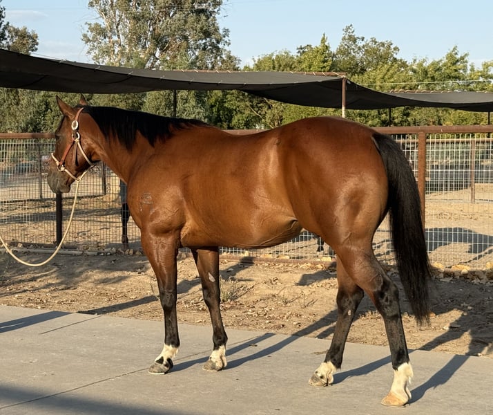 ♦️ 𝐭𝐡𝐞 𝐀𝐌𝐄𝐑𝐈𝐂𝐀𝐍 𝓕𝓪𝓵𝓵 𝓒𝓵𝓪𝓼𝓼𝓲𝓬 ♦️ Happening now thru MONDAY | OCTOBER 20th - Available EXCLUSIVELY on HorseBid's website! For more details and to register visit: www.Horsebid.com CONSIGNOR CONTACT: Jay Clay 209-585-8760 LOCATION: Madera, CA BREED: Quarter horse REGISTERED: No COLOR: Bay HEIGHT: 14.2 AGE: 7 GENDER: Gelding Meet “Amigo” a nice bay 7 year old Ranch- Trail- Heel Gelding! This versatile and athletic horse is the ultimate all-around partner, excelling in trail riding, ranch work, and heeling. Amigo is smooth to ride, kind to all, and an asset to have around! He is a seasoned trail horse, comfortable navigating in all terrain. He's a valuable asset on the ranch, with experience working cattle and handling various tasks with ease. But Amigo is not just limited to trails and ranch work - he's is also a fun jackpot type HEEL horse! Whether you're looking for a partner for competition roping, a reliable trail companion, or a trusty ranch hand, Amigo is the perfect choice. With his intelligent and willing nature, Amigo is easy to use and a pleasure to ride. He's got a strong work ethic and is always eager to please. If you're looking for a horse that can do it all, take a look at Amigo. Sound. UTD on teeth, vaccinations, worming, shoeing, coggins. Call for more information.