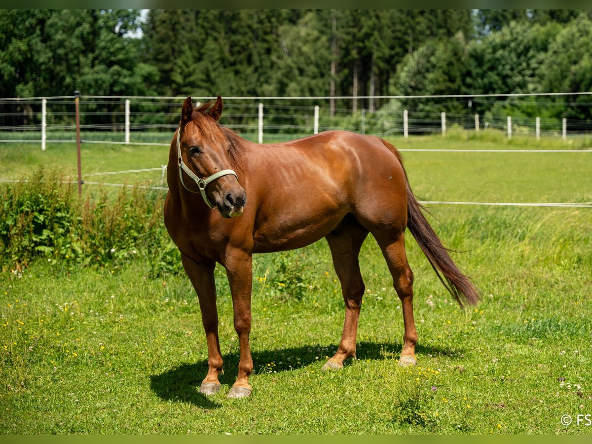 Direkter Magnum Chic Dream Wallach – Top Reiningpferd mit Ausnahmecharakter Walla Dirty Dream aka „Magnum“ ist ein absoluter Blickfang für Reining-Reiter, die ein talentiertes, nervenstarkes und unkompliziertes Westernpferd suchen. Der attraktive Quarter Horse Wallach wird im April 7 Jahre alt und stammt ab vom legendären Magnum Chic Dream, einem der erfolgreichsten Reining-Vererber weltweit (13 Millionen Dollar Sire Earnings). Magnum Chic Dream, ist nicht nur ein NRHA Hall of Fame und 13+ Millionen Dollar Sire, sondern wird ausschließlich über das ICSI-Verfahren angeboten. Dadurch ist sein Samen nicht frei verfügbar, sondern wird gezielt für ausgesuchte Stuten eingesetzt – ein Faktor, der die Exklusivität und Wertigkeit seiner Nachkommen zusätzlich unterstreicht. Die Mutterlinie überzeugt ebenso: aus einer direkten Arcese Producer Stute von Walla Walla Whiz – ein Pedigree, das im Reining-Sport keine Wünsche offenlässt. ⸻ Charakter & Rittigkeit Magnum begeistert durch einen einzigartigen Charakter, gepaart mit viel Talent und Arbeitswillen. Er ist: • absolut unerschrocken in jeder Situation • freundlich, ehrlich und menschenbezogen • sozialverträglich und problemlos im Herdenverband • stets bemüht, seinem Reiter alles recht zu machen Kurz gesagt: ein echter Jedermanns-Liebling. Im täglichen Umgang zeigt er sich äußerst unkompliziert, brav und zuverlässig. ⸻ Ausbildung & Einsatz • seit ca. 4 Jahren durchgehend im professionellen Vollberitt bei RideOn Performance Horses • kennt alle Reining-Manöver sicher und korrekt • sehr gut gymnastiziert, ausbalanciert und fein an den Hilfen • hervorragend zu reiten für Einsteiger, Hobbyreiter, Non-Pros • verzeiht Reiterfehler und vermittelt jederzeit ein sicheres Reitgefühl ⸻ Weitere Informationen • für die Europameisterschaft einbezahlt • passendes Equipment (z. B. Sattel) kann auf Wunsch mit erworben werden • AKU kann jederzeit durchgeführt werden (Kosten trägt der Käufer) ⸻ Ein außergewöhnlich gut gezogener, korrekt ausgebildeter Reining-Wallach mit Top-Abstammung, bestem Charakter und vielseitigem Einsatzbereich – ein echtes Qualitätspferd für ein 5-Sterne-Zuhause. Weitere Informationen, Videos und Probebereiten gerne auf Anfrage.