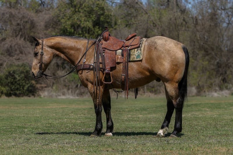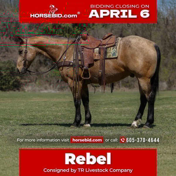 🌟𝑨𝒑𝒓𝒊𝒍 𝐀𝐋𝐋 𝐒𝐓𝐀𝐑 𝐋𝐈𝐍𝐄𝐔𝐏🌟 Happening now thru MONDAY | APRIL 6th - Available EXCLUSIVELY on HorseBid's website! For more details and to register visit: www.Horsebid.com CONSIGNOR CONTACT: TR Livestock Company 605-370-4644 LOCATION: Rusk, TX BREED: AQHA REGISTERED: Yes REGISTERED NAME: Rebels Leo zan parr COLOR: Buckskin HEIGHT: 15.2 AGE: 7 GENDER: Gelding Rebels Leo Zan Parr AKA Rebel is a 7 year old AQHA Buckskin gelding, standing 15.2 hands and stout! Rebel is a tried and true all around gelding! From the arena to the trails, and the ranch, this guy has done and seen it all! Travels out confidently by himself or with other horses. He is surefooted, you can count on him to pay attention and navigate any terrain you put in front of him. He crosses the creeks, all type of obstacles and terrain, and has been exposed to all types of wild life, livestock, and machinery! If you enjoy riding in the arena, you can also count on Rebel! You'll love taking him for a spin in the arena! Rebel carries himself well, has a good stop, easy back up, side passes to open/close gates. His neck rein is solid & true, stays right between your bridle reins. He is equipped with the skills and demeanor to excel in a wide variety of disciplines. We've turned back cattle on him, have ridden him all over the pastures checking yearlings and cow/calf pairs, he has been used to doctor cattle outside and also sort in the pens! Whether you're eyeing the show pen or seeking a versatile partner to hit the trail with Rebel is the man for you. He has a supple stop, side passes, spins, and more! You can do all of the ranch trail maneuvers on him with ease and it does not take an experienced rider, special equipment, or a tons of training to be able to understand and utilize all of his buttons. ☎️ 𝐏𝐥𝐞𝐚𝐬𝐞 𝐫𝐞𝐚𝐜𝐡 𝐨𝐮𝐭 𝐭𝐨 Rachel 𝐰𝐢𝐭𝐡 𝐚𝐧𝐲 𝐪𝐮𝐞𝐬𝐭𝐢𝐨𝐧𝐬, 605-370-4644 for more info.
