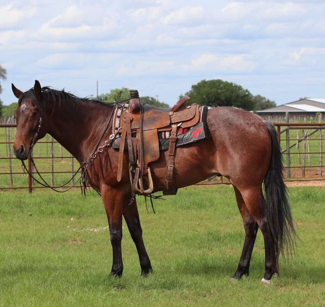 NLINE AUCTION Place your bids at www.PlatinumEquineAuction.com Starting Bid $3500 Auction ends May 25th, 2025 Need a new saddle? Check out White Rock Saddles on our website or Facebook! Meet WHO GEE PLAYBOY…. THE ULTIMATE ALL AROUND PROSPECT YOU’VE BEEN LOOKING FOR! Started Head Horse Established Ranch Horse Ranch Rodeo Horse Fun Trail Horse ♾️2019 model AQHA bay roan Gelding♾️ ♾️15.2 hands tall, weighs 1200lbs♾️ The first thing people notice about Playboy is that he’s simply gorgeous. He is shapey with a big soft kind eye and he has a cool ranchy look about him that always gets attention. He’s also a perfect size, easy to mount with great substance and presence. We have started Playboy on the smarty and slow steers in the arena, but a great horse to go rope and doctor one outside! He has a promising future in the roping pen. Playboy is a fun one to take down the trail, don’t let his age fool you, he is as chill as they get! He crosses through anything, traffic safe and will go all day! This guy is cool as a cucumber, not much of anything bothers him. Really nice, young gelding ready for his person! You are more than welcome to come out and see him, we are located in Lipan Texas. If you are not able to see him in person, we offer FaceTime showings as well and can help arrange hauling anywhere in the US, Hawaii or Canada! Please call or text Makenna Hartzell 817-659-3778 for more information about our outstanding gelding! ONLINE AUCTION Place your bids at www.PlatinumEquineAuction.com Starting Bid $3500 Auction ends May 25th, 2025 Need a new saddle? Check out White Rock Saddles on our website or Facebook!
