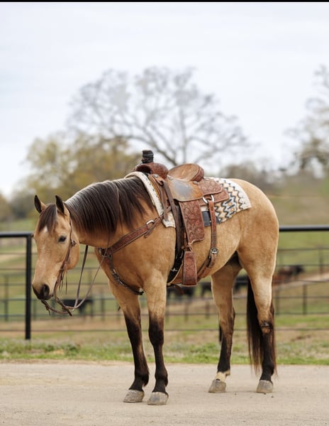 A Royal N Traffic aka “Wally” is a 7-year-old buckskin gelding that truly checks all the boxes. He’s been used and hauled as a dependable head horse, showing consistency, confidence, and a willing attitude every time he backs in the box. He’s the kind that gives you the same honest shot every run and has the foundation to keep excelling in the roping pen. On top of that, Wally is ready to be hauled in the barrels, making him a versatile option for someone wanting a horse that can go both directions and fit multiple needs.