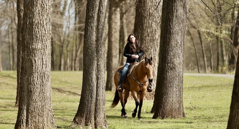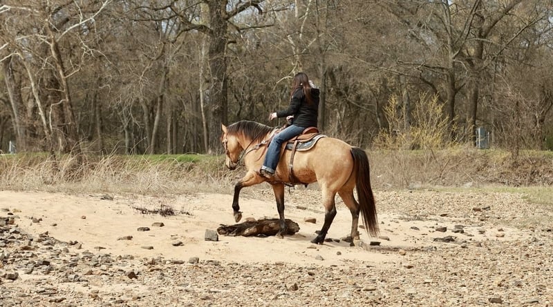 He’s been ridden through all kinds of terrain and handles it willingly—crossing logs, going through water, and navigating rough country without hesitation. He’s sure-footed and confident, making him a great choice for trail riding or using outside. He’s also calm and collected through traffic, handling commotion and new environments with ease.