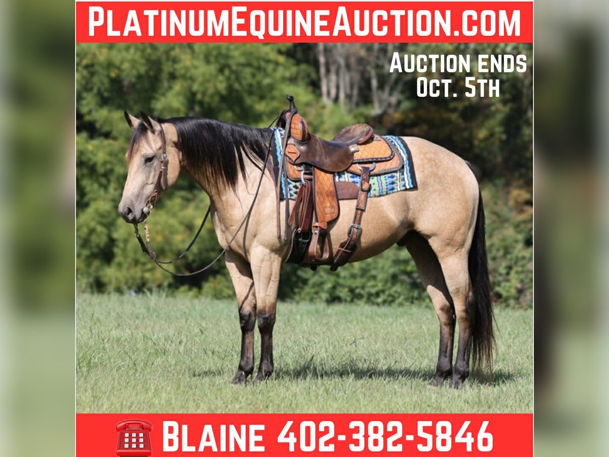ONLINE AUCTION Place your bids at www.PlatinumEquineAuction.com Starting Bid $3500 Auction ends October 5th, 2025 Need a new saddle? Check out White Rock Saddles on our website or Facebook A High Rollin Shiner is a stout and I mean Stout built 15H, Dapple Golden Buckskin, Registered Quarter Horse Gelding that is a 2019 model. He is a well bred horse going back to Shining Spark! Shiner has been ridden all across the US from Oregon to Virginia with various stops in between! He is a well traveled horse that has been used as a ranch horse his whole life. From herding to sorting, pasture roping, loading trucks… he has done it all! Shiner has been trail ridden in the high country that is very rough and rocky. He will cross creeks, ditches, logs and navigate rough rocky areas. He has a smooth jog and a very smooth lope! He takes the correct leads, lopes nice circles, is one hand broke and reins around with ease. He has been exposed to all kinds of wildlife. He has been ridden many miles in the mountains of Eastern Kentucky and encountered every obstacle possible on the trail. He will go up or down even the steepest slopes, across deep creeks, over downed trees, and over all types of rough terrain while still being sure footed. If you want a horse that will get the job done, Shiner is the horse for you! Located in Hugo, OK but pickup also avaliable at out place in Kentucky. Contact B&B Quarter Horses 402-382-5846. ONLINE AUCTION Place your bids at www.PlatinumEquineAuction.com Starting Bid $3500 Auction ends October 5th, 2025 Need a new saddle? Check out White Rock Saddles on our website or Facebook