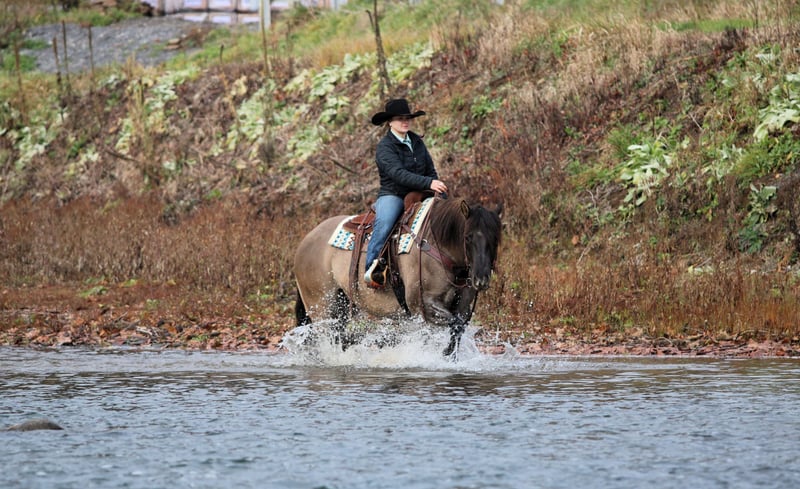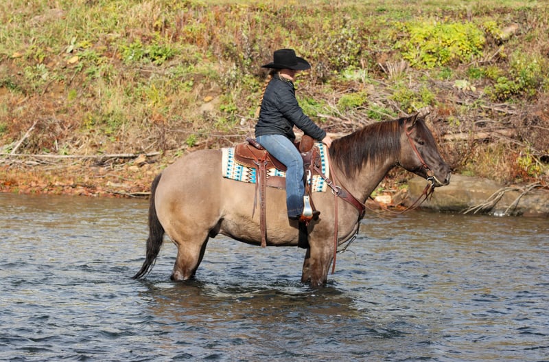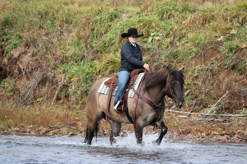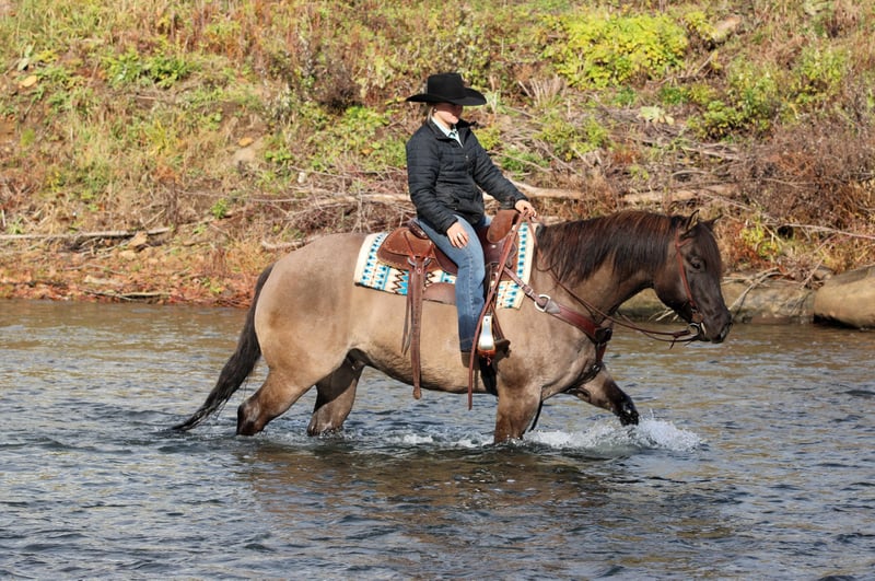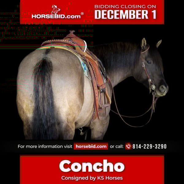 ⚜️ 𝓽𝓱𝓮 𝐇𝐨𝐫𝐬𝐞𝐦𝐚𝐧'𝐬 𝓢𝓱𝓸𝔀𝓬𝓪𝓼𝓮⚜️ Happening now thru MONDAY | DECEMBER 1st - Available EXCLUSIVELY on HorseBid's website! For more details and to register visit: www.Horsebid.com CONSIGNOR CONTACT: KS Horses 814-229-3290 LOCATION: Clarion, Pa BREED: QH REGISTERED: Yes COLOR: Grulla HEIGHT: 15.1 AGE: 6 GENDER: Gelding Concho is a 6 Year Old Grulla Gelding. Super Thick Built and Will Weigh 1,300 lbs. He looks the way a Quarter Horse should! Concho is one of my favorites! Hes the whole package!! Perfect Age, Great Color, Super Good Looking and Rides the very best! Concho has been trail ridden all over and is a great trail horse. Has been ridden in the rough terrain and is very sure footed and as dependable and reliable of a trail horse as you will ride. He has also done every day ranch work on the ranch and has checked fences and roped and doctored calves. He is a finished rope horse and been backed in the box and used as a head horse. Concho has done lots of jobs and can do lots of jobs but my favorite thing about him is how quiet and gentle and how anyone can ride him making him a awesome family horse. Thats my favorite thing about him! Concho has a great neck rein, side pass and good stop and back up. Watch his video and watch him ride in the big creek and carry the flag and teddy bear. Nothing phases him. He is seasoned well beyond his years and still has his whole life ahead of him. Dont miss out on this SUPER NICE REGISTERED GRULLA GELDING!! HE IS TRUELY ONE OF A KIND AND A FOREVER HORSE!! Call or Text Kris at 814-229-3290. We can help arrange safe delivery anywhere in the United States. Thank You and God Bless