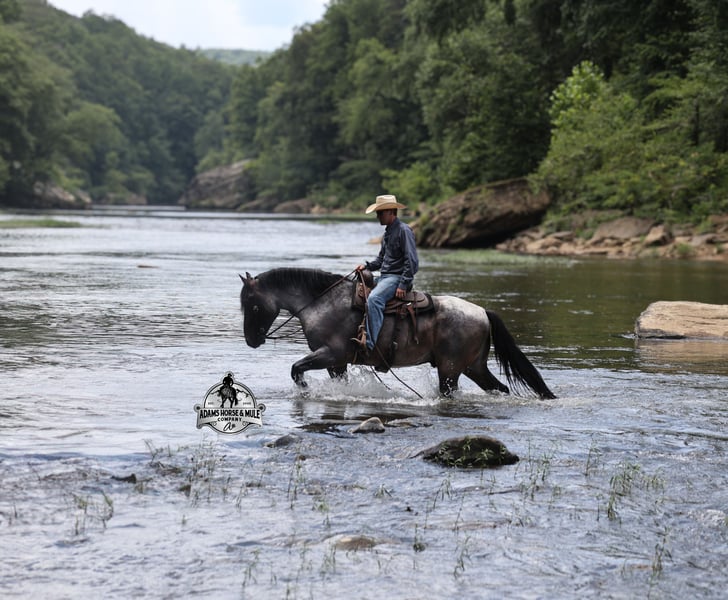 Rango wird am 26. und 27. September auf der Best Of The West Horse Sale in Gladstone, NJ, angeboten. Sie können online bieten oder persönlich bieten. Es gibt einen Vorschautag vor der Auktion, oder Sie können ihn vor der Auktion in Mt. Vernon, KY, reiten. Rango ist ein 1,63 m großer, 6-jähriger, blauer/brauner Roan-Draftcross-Wallach mit dem Aussehen eines Filmstars, Muskeln über Muskeln und der schönen Roanfärbung, die man erwarten würde, wenn Rango auf einer Hollywood-Leinwand erscheint… Rango ist darauf trainiert, auf Kommando zu liegen und zu sitzen, und er zeigt gerne seine Talente. Er wurde auf der Ranch geritten und bei Brandings eingesetzt. Rango hat einen sanften Trab, nimmt seine Gänge und wird schöne Kreise im Galopp machen. Er reagiert auf Zügelhilfen, hat einen guten Halt, seitwärts zu öffnen/schließen von Toren und rückwärts geht er mühelos. Rango wurde verschiedenen Wildtieren ausgesetzt und wurde in den Bergen zur Jagd eingesetzt. Rango ist großartig auf den Trails, er wählt seinen Weg durch felsiges Gelände, überquert tiefes Wasser, bewältigt Steigungen mit Leichtigkeit und geht auch über umgestürzte Bäume. Neben dem Westernreiten wurde er auch englisch geritten und hat Sprünge überwunden! Rango bleibt beim Anreiten der Sprünge stabil und landet im Gleichgewicht. Er wurde auch unter dem Geschirr auf den Straßen gefahren und ist verkehrssicher. Egal, ob Sie auf der Ranch reiten, Trails erkunden, fahren, springen oder einfach nur zusammen liegen und ein Nickerchen machen möchten… Rango kann alles! Für weitere Informationen rufen Sie 606-308-2461 an.