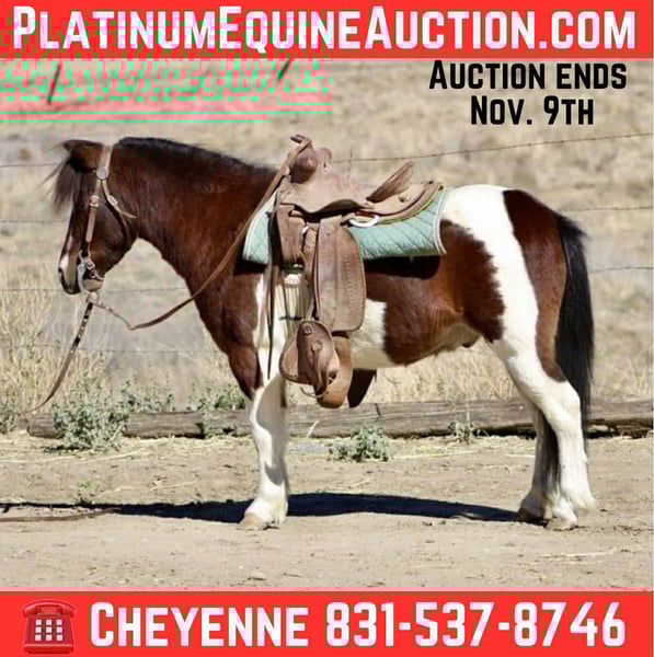 ONLINE AUCTION Place your bids at www.PlatinumEquineAuction.com Starting Bid $3500 Auction ends November 9th, 2025 Need a new saddle? Check out White Rock Saddles on our website or Facebook Meet Twister, the “big horse in a pony body” who’s as cute as a button and full of charm. This 7-year-old paint gelding stands 10.2 hands and is as sweet as he is smart. Twister has been used extensively as a leadline pony and rides like a big horse for intermediate riders. He lunges well, and he has been taken over low meter jumps, and is currently being trained to lay down, he learns quickly and loves to please. He would make an excellent project for a confident child or small rider looking for a safe, willing, and intelligent partner to bring along. He has a Gentle, friendly demeanor and gets along well with other horses and farm animals. Twister will patiently stay tied, lets you clip, and bathes, loads, and hauls well. Twister is Safe, sound, and ready for his next adventure. Twister doesn’t know he’s a pony he’s ready to be someone’s best friend and dependable partner. He is located in Bitterwater, CA. for more information call or text Cheyenne Rey at 831-537-8746. ONLINE AUCTION Place your bids at www.PlatinumEquineAuction.com Starting Bid $3500 Auction ends November 9th, 2025 Need a new saddle? Check out White Rock Saddles on our website or Facebook