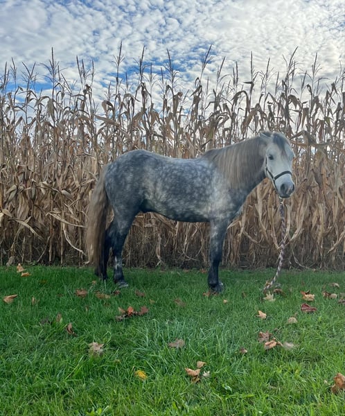 ONLINE AUCTION Place your bids at www.PlatinumEquineAuction.com Starting Bid $3500 Auction ends November 17th, 2024 Need a new saddle? Check out White Rock Saddles on our website or Facebook! Pistol is a 6 year-old, 12h, Welsh Cross gelding. He is a very handsome gentleman, with a very easy-going demeanor. He is trained to ride and has had past experience driving. He will put in a full days work and keep up with the big horses. He has been on the road, worked other horses, stands to saddle and stands for a bath, He is a pony for any young cowboy or cowgirl. For any further information call Laramie Fox 989-802-1499 Located in Oakley, MI. ONLINE AUCTION Place your bids at www.PlatinumEquineAuction.com Starting Bid $3500 Auction ends November 17th, 2024 Need a new saddle? Check out White Rock Saddles on our website or Facebook!