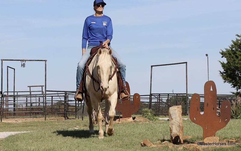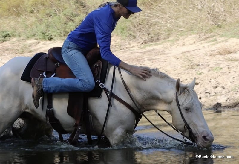 ONLINE AUCTION Place your bids at www.PlatinumEquineAuction.com Starting Bid $3500 Auction ends December 15th, 2024 Need a new saddle? Check out White Rock Saddles on our website or Facebook! “Maximus” – 14.2H, 6 year old white Cremello quarter horse gelding Maximus is a super stout made gorgeous gelding, just coming into his prime years. If you have been looking for something super laid back and gentle – and are not wanting to settle for an older horse, then definitely check out this guy and watch his whole video! Maximus got his miles in his working clothes; he was mostly used outside on a ranch, and used in the sorting pens and in the feedlots. He is massive made, super stout and wide – the model on him in the video is literally 6’2 and she is ALL legs! He has great bone and is made to last. Maximus has a good stop, a nice easy handle, he trots and lopes around super balanced and relaxed. He has a simple one-handed handle and will ride anywhere pitched away on a nice long loose rein at any gait. He is a pretty mover, naturally very balanced and smooth, he is a very comfy ride at all gaits. Maximus was raised out in big open country – but he absolutely loves going to town. He is super relaxed going down the side of the highway, and down the busy streets in town. He loves meeting people and seeing all the things that there are to see. He rides out great alone, and has probably been more miles alone than he has in groups. He is easy to get along with and lives outside well in a group of horses, or he is happy kept inside in the stall barn. He is easy to catch and always comes up to you, he loves being around people and he loves going to work. He stands tied quietly, is easy to saddle and bridle and he stands dead still for you to step on and off. He loves a bath and really enjoys playing in the water. He is great at crossing creeks and loves to go for a swim in the river or pond. He hops right on the trailer easily, and stands quietly on the trailer as well as tied off on the side of the trailer. He has no vices or bad habits and is a fresh clean slate for someone to finish out as a rope horse, if you want to go that direction with him. Please check back on our website for additional videos to be posted of him over the next two weeks! Please call anytime for more information at 214-605-7174 Maximus is located in Weatherford, TX – one hour from Dallas / Fort Worth International Airport. He is an easy day trip or fun overnight trip to come try out, from anywhere! We are experienced knowledgeable sellers and we can help with quickly arranging affordable shipping to any buyer’s location – we have experience shipping horses worldwide – including regularly to Hawaii, Canada, Mexico, Europe, and South Africa. Go to our Facebook page Buster Ranch and check our website for buyer reviews, for more videos, additional info, etc: https://busterhorses.com/Maximus ONLINE AUCTION Place your bids at www.PlatinumEquineAuction.com Starting Bid $3500 Auction ends December 15th, 2024 Need a new saddle? Check out White Rock Saddles on our website or Facebook!
