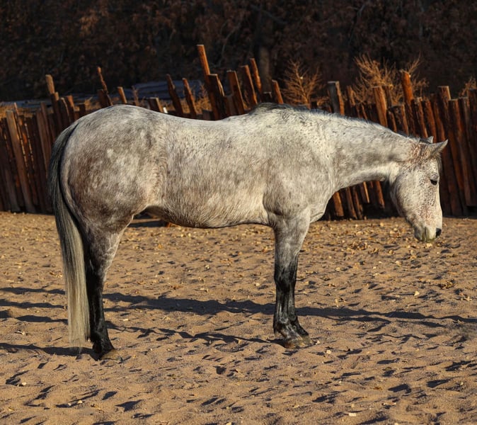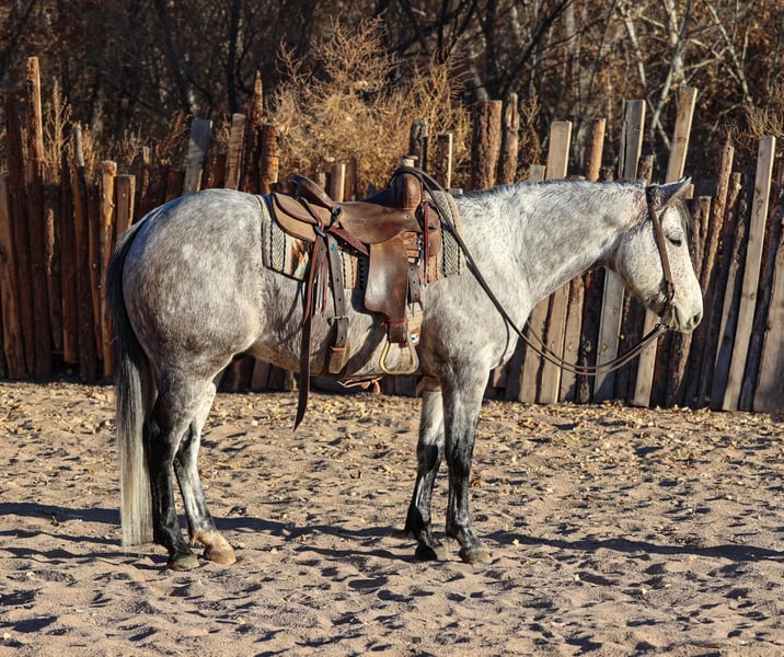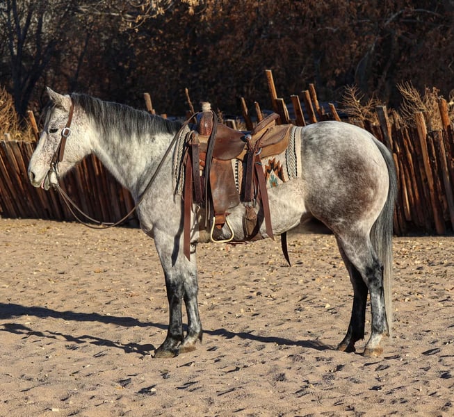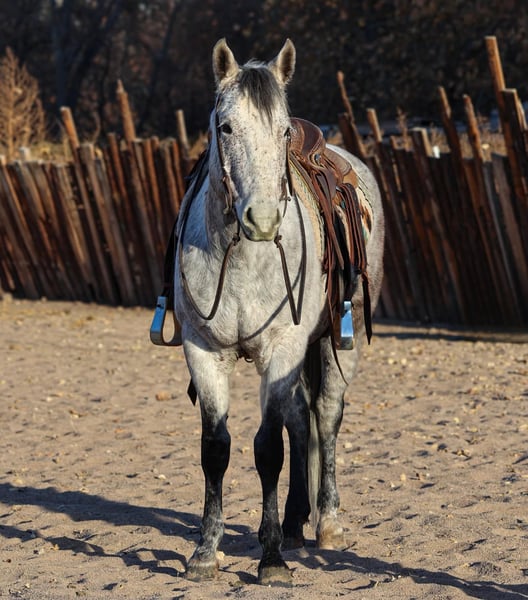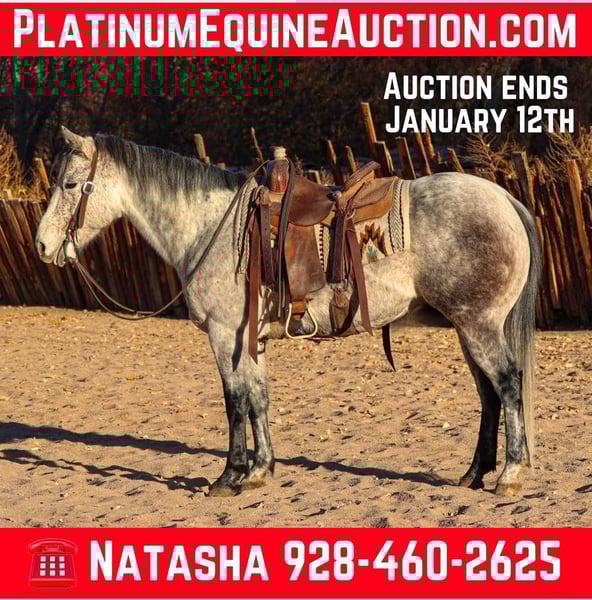 ONLINE AUCTION Place your bids at www.PlatinumEquineAuction.com Starting Bid $3500 Auction ends January 12th, 2024 Need a new saddle? Check out White Rock Saddles on our website or Facebook! Titan is a 6 year old grade gelding standing 14.2hh. Titan was started as a 3 year old and has been used on a big Arizona ranch ever since, giving him lots of miles and exposure under his belt. Titan has done absolutely every job around the ranch from dragging calves to doctoring yearlings, and making big circles in the big country. Take this magnificent gelding absolutely anywhere and he’ll go confidently without batting an eye. Not only is Titan great to ride outside, but he will also walk trot and lope both ways in the arena with ease! Good to groom, saddle, bridle, bathe and shoe! Titan has been used on a ranch his whole life, and lived in pastures with other horses so he does have a few bumps and scrapes including an old scar on his withers. None of which effect his soundness and he will be coming with a lameness exam from my vet as well as a clean coggins and health. Transport can easily be arranged anywhere in the US!!! Located in Camp Verde, AZ Contact D/C Equine Services Natasha 928-460-2625. ONLINE AUCTION Place your bids at www.PlatinumEquineAuction.com Starting Bid $3500 Auction ends January 12th, 2024 Need a new saddle? Check out White Rock Saddles on our website or Facebook!