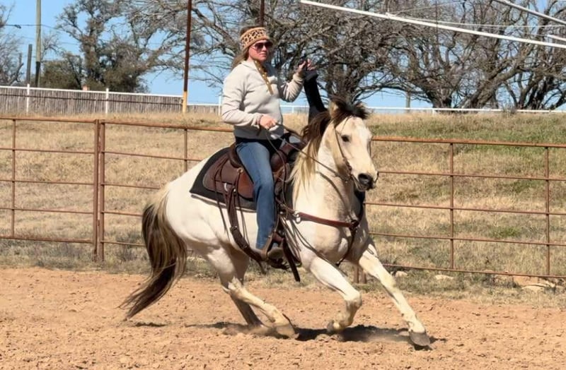ONLINE AUCTION Place your bids at www.PlatinumEquineAuction.com Starting Bid $3500 Auction ends February 9th, 2025 Need a new saddle? Check out White Rock Saddles on our website or Facebook! Alfie is one of our most favorite horses, standing at 14.2H and 7 yrs old, he’s the perfect height AND perfect age for everyone! Not to mention, he’s a GORGEOUS buckskin paint! Alfie has such an AMAZING personality and he is extremely gentle. He’s been primary used as a western AND english lesson horse for all ages. He absolutely knows how to operate to the riders ability. He’ll take care of some of the babiest of beginners without one wrong step and he’ll move out and ride around more free for the advanced riders! He’s very comfortable to ride and will make you want to ride all day long with how fun he is! He is as honest as they come and only wants to please! Alfie is easy to ride, will neck rein, direct rein, move off leg and he stops exactly when you ask him to! He does great with time off and never offers to buck, bolt or rear! He’s proven safe and sane! He’s extremely easy to get along with, ties great, loves to be brushed and loved on, loads and hauls well, stands great for farrier and all the above! The second we swung a leg over him, he became the barn favorite! Safe and gentle is our niche, but it’s rare to find a younger horse with his experience and ability to adapt to the level of his rider! Not only that but, buckskin paints are few and far between and it’s not often they are sane and beginner gentle too! Someone is about to get their dream horse and those who are shopping for color but need gentle, absolutely don’t want to miss Alfie! More pics and videos on his website page at northtexashorsecompany.com/alfie. Please call Blair with North Texas Horse Company for more info at 817-757-3046. We are located in Weatherford, TX and can help arrange affordable shipping to anyone!! ONLINE AUCTION Place your bids at www.PlatinumEquineAuction.com Starting Bid $3500 Auction ends February 9th, 2025 Need a new saddle? Check out White Rock Saddles on our website or Facebook!