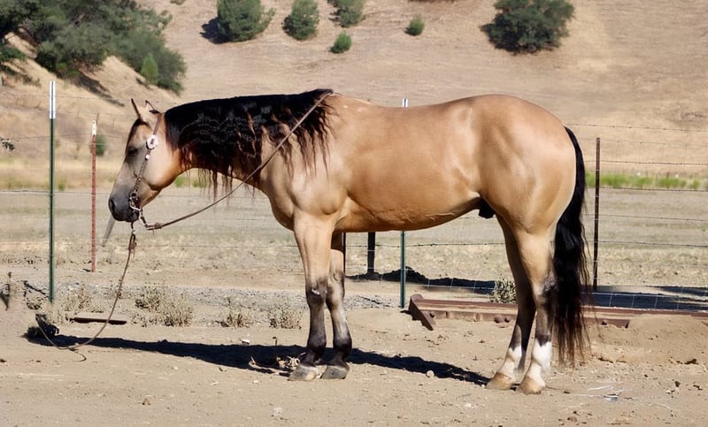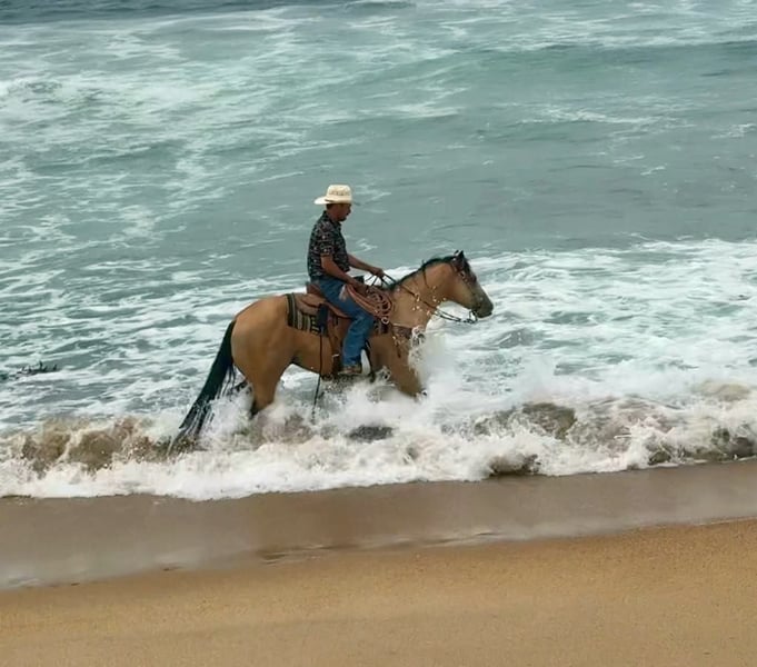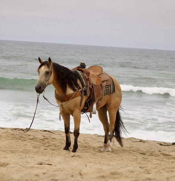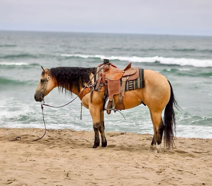 ONLINE AUCTION Place your bids at www.PlatinumEquineAuction.com Starting Bid $3500 Auction ends July 20th 2025 Need a new saddle? Check out White Rock Saddles on our website or Facebook 24k-Mr Gold Nugget is the Ultimate Buckskin Dream Horse! Meet 24k-Mr Gold Nugget a stunning, drop-dead gorgeous buckskin 7 years old and 14.3 hands tall this gelding checks all the boxes: safe, reliable, calm, and absolutely cool. He’s as trustworthy as they come and one of the easiest horses to ride. Quiet and level-headed, this gentle soul has the kind of disposition that makes him a perfect family favorite, yet he’s versatile and athletic enough to tackle any challenge you throw his way. Whether you’re hitting the trails or stepping into the arena, 24k-Nugget is always ready. He confidently navigates brush, logs, and deep creek crossings. He’s been used for roping, doctoring, and branding cattle, making him an awesome ranch partner. He has the potential to excel in the roping pen—whether as a breakaway or heel horse. This gelding is a smooth mover with beautiful circles, a soft stop, and an easy back-up. He’s well-exposed and unbothered by the unexpected—he’s seen bridges, tires, pool noodles, and more. He’s been to town, and couldn’t care less about honking horns, buzzing traffic, or semis. We’ve even taken him to the beach—he loves the waves and the feeling of sand in his hair! 24k- Nugget is the kind of horse people dream of owning. He’s confident riding out alone or in a group, handles time off like a pro, and is a joy to groom, clip, and tack up. He hauls like a champ, settles in anywhere, and ties quietly for overnight camping trips. This is the horse you’ll be proud to own—safe, stunning, and ready to make countless memories with you. Located in Paicines, CA. Contact Dina at Longhorn Ranch 831-537-1915 to meet this handsome buckskin! ONLINE AUCTION Place your bids at www.PlatinumEquineAuction.com Starting Bid $3500 Auction ends July 20th 2025 Need a new saddle? Check out White Rock Saddles on our website or Facebook