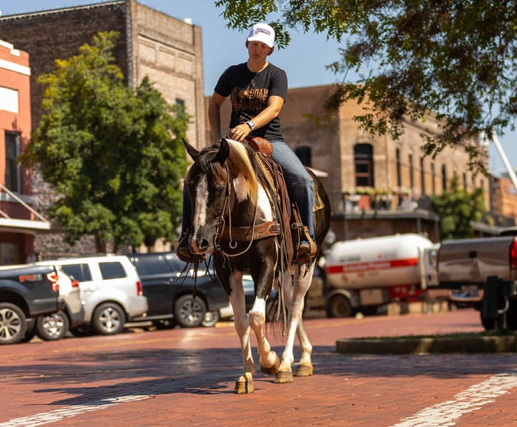 ONLINE AUCTION Place your bids at www.PlatinumEquineAuction.com Starting Bid $3500 Auction ends September 28th, 2025 Need a new saddle? Check out White Rock Saddles on our website or Facebook A Tardy Little Skip AKA Skip, a super sweet 7 year old APHA. He stands 14.3 hands tall and is as flashy as they come! If your looking for a horse that combines beauty, brains, and a gentle temperament? Look no further! Skip has been trail rode all over, he goes wherever he is asked, crosses the creeks, logs and bridges great! He has also been around cattle for basic ranch work such as gathering and penning. Skip has also spent a little time in the arena, he is soft in the face, he has a willing attitude and smooth gaits. Whether you’re looking for a trail partner, family horse, or a stunning addition to your family, this gelding has the potential to excel in any discipline. Don’t miss the opportunity to own this sweetheart of a gelding! If you would like to schedule a time to come meet and ride Skip , or have any other questions about Skip feel free to reach out! ☎️ 𝐏𝐥𝐞𝐚𝐬𝐞 𝐫𝐞𝐚𝐜𝐡 𝐨𝐮𝐭 𝐭𝐨 Rachel 𝐰𝐢𝐭𝐡 𝐚𝐧𝐲 𝐪𝐮𝐞𝐬𝐭𝐢𝐨𝐧𝐬 with TR Livestock 605-370-4644. Skip is located in Rusk TX, we can also help arrange shipping nationwide! ONLINE AUCTION Place your bids at www.PlatinumEquineAuction.com Starting Bid $3500 Auction ends September 28th, 2025 Need a new saddle? Check out White Rock Saddles on our website or Facebook