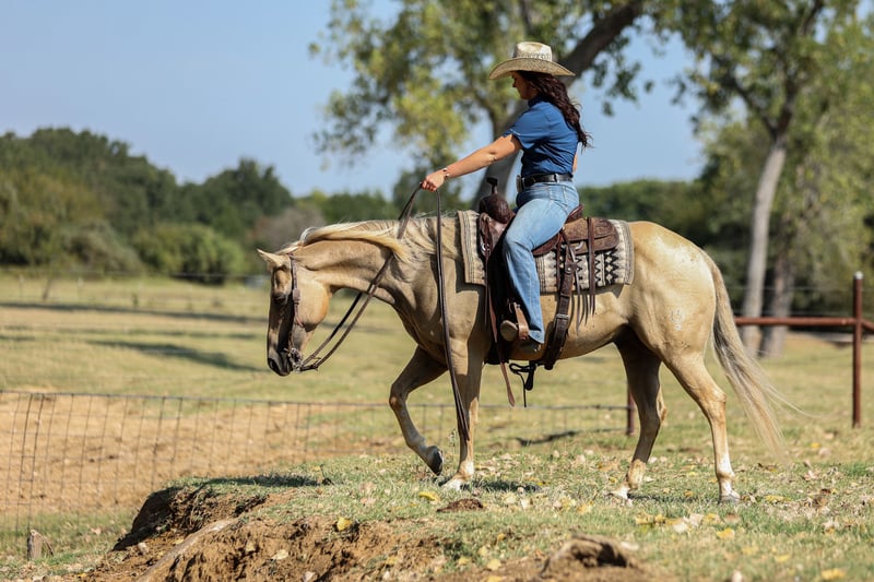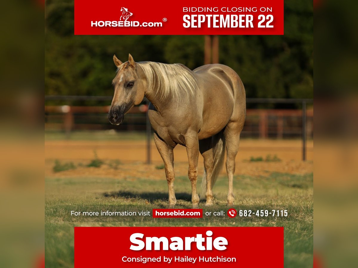 🍁𝒕𝒉𝒆 𝐅𝐀𝐋𝐋 𝑺𝒑𝒆𝒄𝒕𝒂𝒄𝒖𝒍𝒂𝒓🍁 Happening now thru MONDAY | SEPTEMBER 22nd - Available EXCLUSIVELY on HorseBid's website! For more details and to register visit: www.Horsebid.com CONSIGNOR CONTACT: Hailey Hutchison 682-459-7115 LOCATION: Joshua TX BREED: Quarter Horse REGISTERED: No COLOR: Palomino HEIGHT: 14 AGE: 7 GENDER: Gelding Smartie is 7 years old, stands 14 hands tall, and the most lovable little palomino gelding!! Perfect gentleman on the ground- easy to catch, stands quietly to be groomed, tacked up, and for a bath. Loads/ hauls great, good turned out with other horses. Curious, super gentle, loves to be loved on, and ready for a new adventure every day! Smartie has been used for everyday task on the ranch, ridden outside to gather cattle, worked in the feed yard moving horses, and hundreds of miles out on the trails. He has a smooth ground covering walk, sure footed in different types of terrain, and is comfortable to cruise around on all day. Crosses logs, rides thru water, and goes where-ever he’s pointed to. One handed easy neck rein, soft behind the bridle, lopes circles in the arena, and picks up both leads. Handy guy to have around to do any chore! 𝙄𝙩’𝙨 𝙞𝙢𝙥𝙤𝙨𝙨𝙞𝙗𝙡𝙚 𝙣𝙤𝙩 𝙩𝙤 𝙖𝙙𝙤𝙧𝙚 𝙝𝙞𝙢!💛😇