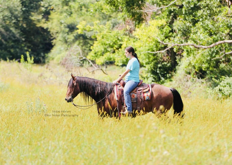 🍁𝒕𝒉𝒆 𝐅𝐀𝐋𝐋 𝑺𝒑𝒆𝒄𝒕𝒂𝒄𝒖𝒍𝒂𝒓🍁 Happening now thru MONDAY | SEPTEMBER 22nd - Available EXCLUSIVELY on HorseBid's website! For more details and to register visit: www.Horsebid.com CONSIGNOR CONTACT: Nolan Horses 563-590-8109 LOCATION: Peosta, IA BREED: AQHA REGISTERED: Yes REGISTERED NAME: Jacks Happy Brother COLOR: Red Roan HEIGHT: 14.2 AGE: 7 GENDER: Gelding Jacks Happy Brother Meet Wrangler – a stunning 7-year-old red roan gelding who turns heads wherever he goes! Standing 14.2 hands and weighing in at over 1100 lbs, he’s thick-made, compact, solid and dependable as they come with a gorgeous mane and tail. Wrangler is one of those geldings you will search a life time to find- he is the perfect size for any aged rider to have some fun on! Wrangler has a good pedigree, a great mind and all the ability you could ask for, plus he’s extremely quiet and gentle! We honestly cannot say enough good things about Wrangler! He is easy to ride, in the arena he stands to be mounted, walks off nicely every time, has a nice jog, lopes circles, rides on a loose rein and neck reins, has a nice stop, knows leg cues, side passes and backs up. He has smooth transitions, is soft in the face, and takes both leads with ease. Rides english and moves beautifully under saddle– a real head-turner in any tack! Wrangler has seen lots of outside miles as well, he crosses water, goes up and down the hills, over the logs and through the mud. He’s steady and confident on the trail, crosses obstacles, and handles new situations with a willing attitude. He has been started on the heel side as well-he has roped cattle and the sled out of the box and is coming along great. Wrangler has lots of run and is good in the box. He has also been used to gather and sort cattle in the pasture. He loves attention, is easy to catch, stands tied all day, stands to be brushed, saddled, and bridled. Wrangler is super sweet, stands good for the farrier and veterinarian, loads good, hauls well, is good in a stall or pasture, he is good with both mares and geldings. Wrangler is a great solid, sound, all-around good gelding! Don’t miss out! 100% sound. Wrangler is located in Iowa- we can help arrange shipping nationwide. 📲Call or text Katie with any questions 563-590-8109.