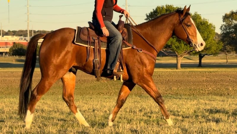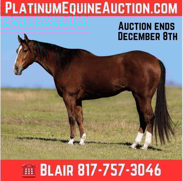 ONLINE AUCTION Place your bids at www.PlatinumEquineAuction.com Starting Bid $3500 Auction ends December 8th, 2024 Need a new saddle? Check out White Rock Saddles on our website or Facebook! A Big Wagon, aka “Wheelie” is a 2018 model, 15.3H AQHA bay gelding that is the total package!We originally bought him as a prospect for our personal string, and let me tell you, we absolutely LOVE him! The only reason he’s available is because we just don’t have time for ALL the great ones we have. Lucky for you, that means this exceptional gelding could be yours! Wheelie is as beginner friendly as they come, laid back, gentle, and a total dream to ride. For his age, you rarely find one with such an outstanding mind! He’s 100% safe and sane, no spook, no buck, no bolt, no rear. New places and experiences? He handles them like a seasoned pro! Don’t be intimidated by his double running bred pedigree, he’s not “hot” or overly forward in the least. This guy is broke like one should be! He neck reins, switches gaits with ease, and stops when asked. His gaits are incredibly comfortable, making every ride an absolute pleasure. And let’s talk about his personality, Wheelie is one of the sweetest horses you’ll ever meet. He loves attention, has a heart of gold, and is always ready for his next adventure! On top of that, Wheelie is a fancy mover with limitless potential. He’s been started on the barrel pattern and has also been ridden English, so whether you’re looking for a barrel prospect, a safe horse for the kids, or just a steady partner to relax on the trails, Wheelie is your guy. He’s versatile enough to shine in a performance home but would be just as happy being the go to confidence builder or family horse. He’d even make a fantastic lesson horse for beginners or kids! He ran on the track as a 2 yr old but his gentle demeanor made him an even better pony horse. After his track days, he spent time with a gentleman who gave him a solid handle, and now he’s ready for his next chapter with you! Wheelie is easy to handle in every way. He loads, leads, hauls, bathes, and ties like a champ. He’s up to date on teeth, feet, and Coggins, and he’s ready to go to his new home! Don’t miss out on this exceptional gelding. He’s the kind of horse the whole family will fall in love with and find a use for! Whether you’re hitting the trails, wanting to run barrels, or just looking for a safe, reliable partner, Wheelie is the total package. Don’t let this one slip through your fingers! Watch his FULL video and go to his website page northtexashorsecompany.com/wheelie for more pictures and footage! Please call Blair with North Texas Horse Company for more info at 817-757-3046. We LOVE to talk about him! We are located in Weatherford, TX and can help arrange affordable shipping to anyone!! ONLINE AUCTION Place your bids at www.PlatinumEquineAuction.com Starting Bid $3500 Auction ends December 8th, 2024 Need a new saddle? Check out White Rock Saddles on our website or Facebook!