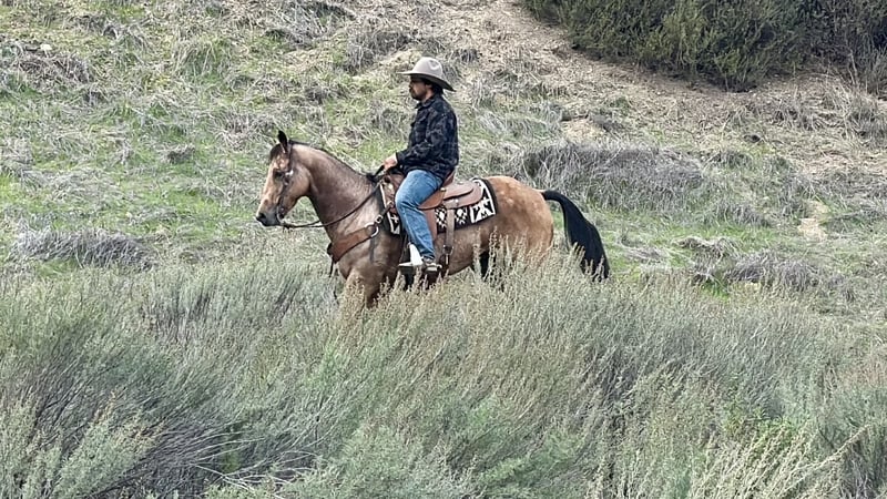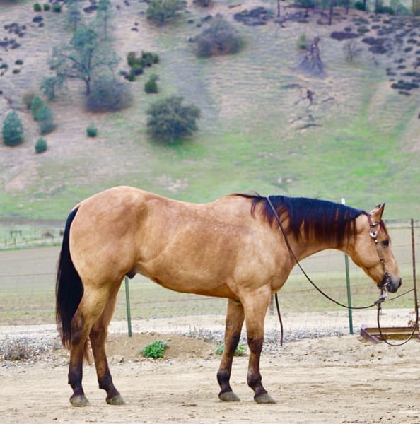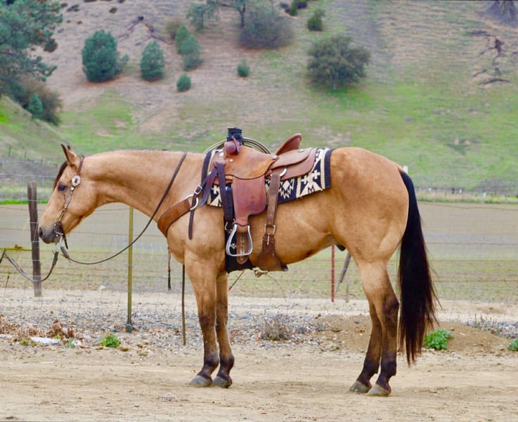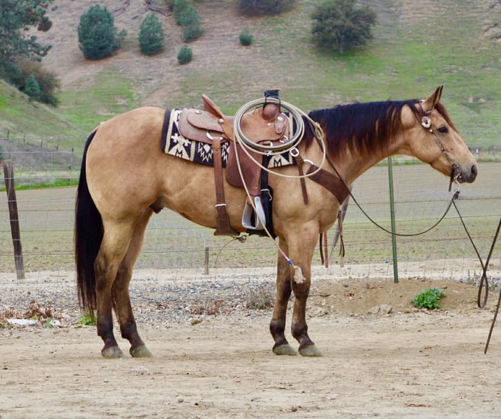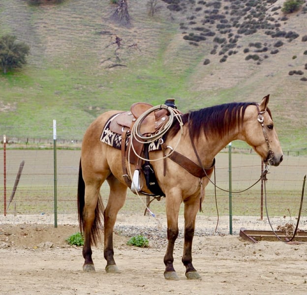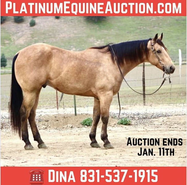ONLINE AUCTION Place your bids at www.PlatinumEquineAuction.com Starting Bid $3500 Auction ends January 11th, 2025 Need a new saddle? Check out White Rock Saddles on our website or Facebook Start the New Year off right — with a horse that’s comfortable in many roles. He is a stout, good-looking 8- year-old, 15-hand buckskin gelding that comes with a whole toolbox: superior trail horse, handy ranch horse, and started roping the lead steer. He’s the kind you can use all week and still enjoy on the weekend — honest, user-friendly, and easy to get along with. Out on the trail, Aloe is the real deal. He’ll go anywhere you point him — steep hills, brush, rocks, downed trees, and water — and he stays sensible around wildlife and traffic. He’s confident without being pushy, and he takes care of his rider when the terrain gets rough or the world gets loud. In the arena, he’s smooth and comfortable — the kind that makes you want to keep riding “just one more lap.” He’s soft in the face, gives at the poll, moves off your leg, and lopes slow and collected like a rocking chair. He has a nice handle, a solid stop, and backs easily, and he’s the type that stays willing and moldable for different levels of riders. Aloe has also been exposed to a pile of “extras” and takes it in stride — flags, tarps, bouncy balls, obstacles, bridges, tires, pool noodles, and more. Need to drag something? He’s been there. Want a horse that doesn’t make a production out of new stuff? That’s Aloe. He’s also simple in the day-to-day: hauls well, stands tied, clips, and is good for the farrier. He’ll ride out alone or in a group and stays the same steady, usable gelding wherever you point him. If you’re looking for one that’s honest, usable, and versatile — the kind that can be your trail partner, ranch hand, and arena ride all in one — Aloe is the one to start the year with. Contact us to come meet Aloe and get all the details — he’s the kind that’s even better in person, and we’re happy to visit with you and help you decide if he’s the right fit. Nationwide shipping available with our trusted haulers — we can help get Aloe delivered safely to his new home anywhere. Dina — Longhorn Ranch 831-537-1915 Paicines, CA ONLINE AUCTION Place your bids at www.PlatinumEquineAuction.com Starting Bid $3500 Auction ends January 11th, 2025 Need a new saddle? Check out White Rock Saddles on our website or Facebook