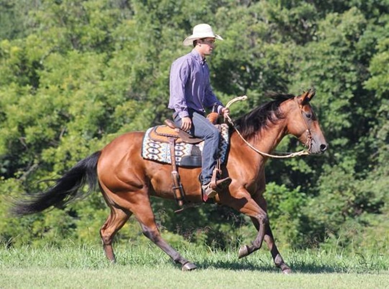 ONLINE AUCTION Place your bids at www.PlatinumEquineAuction.com Starting Bid $3500 Auction ends June 23rd, 2024 Need a new saddle? Check out White Rock Saddles on our website or Facebook! Blondy Doc Hickory is a big super stout built 15-15.1hh, 5 year old, Bay Registered Quarter Horse Gelding. Hickory is a well traveled horse that has been ridden in several states and has been used as a ranch horse in every aspect of ranch life. From herding to sorting, pasture roping and doctoring, Hickory is stout enough to pull anything that you can throw a rope on! He has been trail ridden in several states and used at the stockyards to pen cattle on a few occasions. He will cross creeks, ditches, logs and navigate rough rocky areas. Hickory is safe riding in traffic. He has a smooth jog, a nice lope, will slide stop, turns a circle both ways, sidepasses and backs with ease! Hickory has been exposed to all kinds of wildlife such as deer or turkey or other animals like cows or dogs and will go anywhere that he is asked too. He has been rode many miles in the mountains of Eastern Kentucky and encountered every obstacle possible on the trail. He will go up or down even the steepest slopes, across deep creeks, over downed trees, and over all types of rough terrain while still being sure footed. If you want to feel and look like a real deal cowboy/cowgirl just climb on Hickory and he will make you look like one! If you have any questions call Paul Dandro 443-435-4578. Located in New Park, PA. ONLINE AUCTION Place your bids at www.PlatinumEquineAuction.com Starting Bid $3500 Auction ends June 23rd, 2024 Need a new saddle? Check out White Rock Saddles on our website or Facebook!