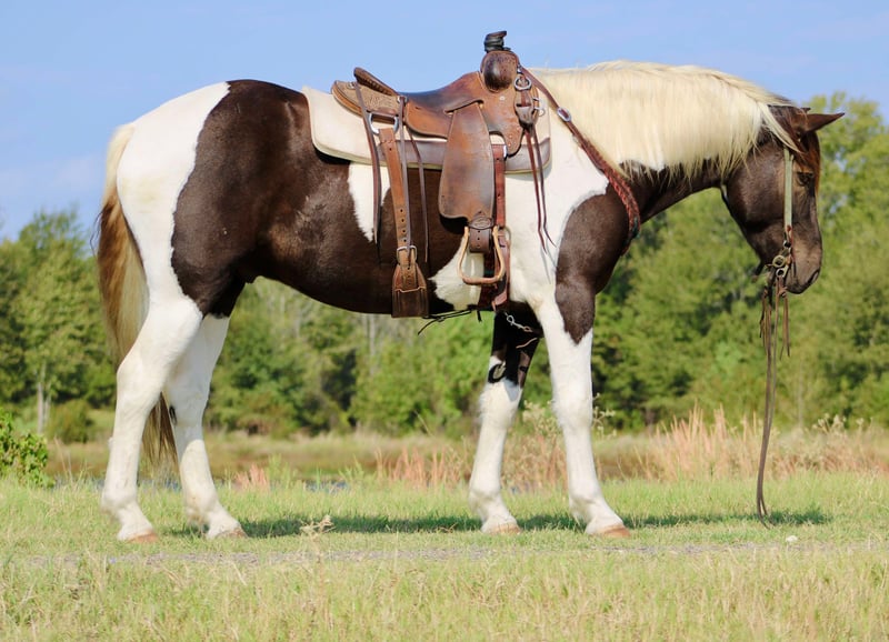 ONLINE AUCTION Place your bids at www.PlatinumEquineAuction.com Starting Bid $3500 Auction ends November 24th, 2024 Need a new saddle? Check out White Rock Saddles on our website or Facebook! Yall check this guy out! Meet Tug Boat. Tugboat is a black and white draft cross paint gelding standing 15.1 hands tall. Tug Boat is only 6 years old with lots of rides under his belt. We have used him to gather cattle using dogs, pushing cattle at a sale barn and doctoring in the pasture. He really enjoys sorting and penning and will really excel if someone wanted to continue him down that path. But not only is he a ranch horse, Tug Boat is also an exceptional trail horse. He is traffic safe; we have ridden him beside I-20 several times including riding on over passes and bridges that cross water. He loves to swim and will go right in without hesitation. Tug Boat will ride out alone or with a buddy and will go wherever you point his head. He will self load into the trailer and he stands tied quietly. Tug Boat loves people and is easy to catch, bathe, groom,shoe, deworm. He is UTD on shots, coggins, deworming and teeth. He is currently not shod but will take shoes without issues. My 5 year old son can handle this horse without worry! He gets along in a mixed herd and loves young babies! He was the weaning buddy for my colts this year. Tug Boat is a people pleaser and does his best to make his rider happy! He has a really good one hand neck rein and will turn around with the best of them. His gaits are dreamy he is so smooth it’s like floating when you’re riding him. I have really enjoyed Tug Boat the years that I have owned him and I know whoever gets him will love him just as much! If you have any questions or would like to chat about him please give Alicia Darling a call at 903-840-8010. Tug Boat is located in Canton, Texas but we work with shippers that go all over the country and I will be more than happy to help line out transport if needed! ONLINE AUCTION Place your bids at www.PlatinumEquineAuction.com Starting Bid $3500 Auction ends November 24th, 2024 Need a new saddle? Check out White Rock Saddles on our website or Facebook!