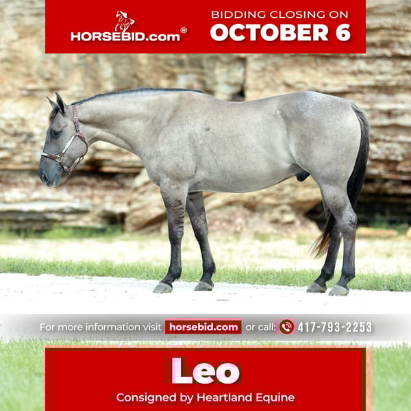 🍂 𝓐𝓾𝓽𝓾𝓶𝓷 𝑨𝑳𝑳 𝑺𝑻𝑨𝑹 𝑳𝑰𝑵𝑬𝑼𝑷 🍂 Happening now thru MONDAY | OCTOBER 6th - Available EXCLUSIVELY on HorseBid's website! For more details and to register visit: www.Horsebid.com CONSIGNOR CONTACT: Heartland Equine 417-793-2253 LOCATION: Mt Vernon MO BREED: Quarter Horse REGISTERED: Yes REGISTERED NAME: Leo Sunfrost Hancock COLOR: Grulla HEIGHT: 15.2 AGE: 7 GENDER: Gelding “Leo” is a big, shapey 7 year old AQHA gelding. He stands 15.2 hands. This beautiful grulla gelding turns heads everywhere he goes! Leo is broke & is as honest as they come. He is easy to get along with, uncomplicated to ride. Leo has all the buttons you could ever need- he is nicely broke with a good handle. Neck reins, collects up, moves off of leg pressure & picks up all gaits. He knows his leads ,has a nice smooth stop & gorgeous lope! Rides English or western. Leo has been rode out on trails in big groups or alone and in the arena, he’ll pack a rider wherever they point him. Leo is level headed & nothing phases him! He is a ranch horse deluxe- we have used him to doctor cattle in the pasture, gather and work in the sale barn. He knows a hard days work and is eager to please. Leo loves attention and has the best personality. Stands quietly to be saddled, easy to bridle & stands perfectly still to be mounted. He will not walk off or rush you to get on, he is extremely patient & is happy to wait. Sound, in great shape and ready to move into your barn!