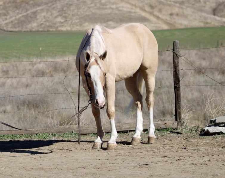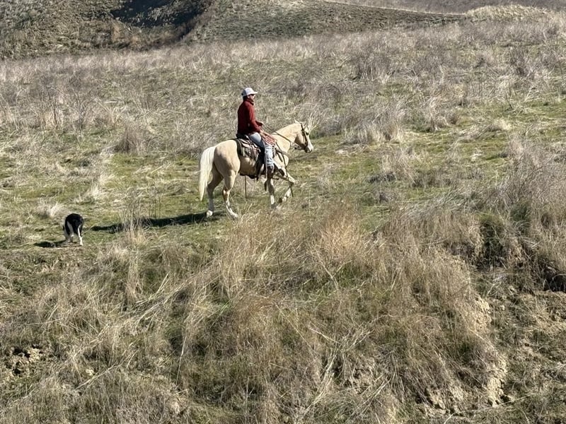 ONLINE AUCTION Place your bids at www.PlatinumEquineAuction.com Starting Bid $3500 Auction ends February 3rd, 2025 Need a new saddle? Check out White Rock Saddles on our website or Facebook! Bruno is the palomino gelding who’s everything you’ve ever dreamed of in a horse! At 14.3 hands and just 7 years old, this charming boy is perfect for families and adventurers alike. With his “born broke” attitude, he’s not just a safe ride; he’s your ultimate companion for everything from family outings to rodeo events to tranquil trail riding. This horse is safe trustworthy and easy to handle in any situations. He truly is a confidence builder for any level rider. Bruno will take you through trails and forests while he effortlessly navigates rocks, logs, and rivers like a true backcountry guide. In the arena, his calm demeanor shines as he picks up leads with ease and turns on a dime. You can. Ride him bridle less, bareback or just in halter makes no difference to him. Plus, he’s tackled trail courses that would make any horse owner proud. He has navigated tires, bridges, flags, bouncy balls all with his I can attitude. Busy streets are no challenge car horns and passing trucks are just another day for this seasoned champ. And if ranch work is on your agenda, Bruno is roping the sled and slow cattle and making a sweet heel horse. He is happy to gather with the best of them! He also branded cattle and is super fun. He’s easy to catch, shoe, and bathe, and he absolutely loves his grooming sessions. He stands tied tacks up easy and is great for the farrier and vet appointments. He pastures or stalls well. He loads well hauls calmly and takes in new places with poise and confidence you can go out solo or with a group makes no difference to him. This special boy is ready to join your family! Contact Longhorn Ranch Dina 831-537-1915 Located in Paicines, CA, to learn more about Bruno Can’t wait to speak with you about this golden boy! ONLINE AUCTION Place your bids at www.PlatinumEquineAuction.com Starting Bid $3500 Auction ends February 3rd, 2025 Need a new saddle? Check out White Rock Saddles on our website or Facebook!