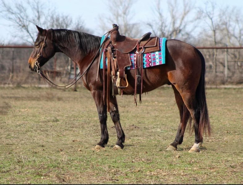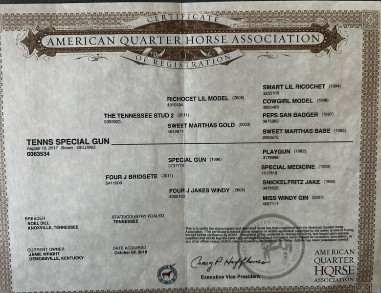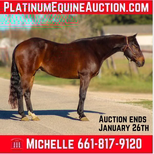 ONLINE AUCTION Place your bids at www.PlatinumEquineAuction.com Starting Bid $3500 Auction ends January 26th, 2025 Need a new saddle? Check out White Rock Saddles on our website or Facebook! Tenns Special Gun is a 2017 model AQHA brown gelding standing 14.2hh and built the very best. Willy as we call him around the barn is an exceptional young gelding that has a pedigree packed with winners including the GREAT 6666’s stud Playgun who is the sire of the earners of more than $10,000,000. He also is a great grandson of Smart Lil Richochet who is the sire of multiple NCHA champions with offspring earnings in excess of $3.9 million! Willy has a fun personality and loves to please! He has had exceptional training and rides around the very best . Willy will walk,trot, and lope the most beautiful perfect circles with his nose in the dirt. He will move off your leg, side pass , has a great turn around on him both ways. He has absolutely flawless lead departures. Willy is very smooth at any gait and lopes around like a rocking chair. He has been showed a little bit in the ranch riding events and would make an exceptional youth or amateur show horse. I absolutely guarantee you this gelding will not disappoint. He has been trained with the Craig Cameron horsemanship methods. We have used Willy a ton outside to check cattle and fences , load trucks. Willy is cowy and loves to work a cow which also makes him a great candidate for someone wanting to go to the ranch sorting events. He is just a FUN all around kind of guy. He is so much fun to take down the trails and truly enjoys it. He will cross water, logs, brush , goes up and down hills with no issues at all. Ride him in town with the bright lights , traffic , crowds of up people this guy doesn’t mind one bit . He’s absolutely exceptional at whatever you do on him. Willy is ALWAYS the first one to meet you at the gate this guy LOVES attention. He’s always waiting for the neighbor kids to bring him cookies and come to give him all the attention in the world . Willy stays gentle he is absolutely one of the fanciest , best minded , athletic horses we have been able to offer and were so proud of him. We just know his next family is gonna enjoy him as much as we have. Christmas is right around the corner and Willy is the perfect present! Located in Stephenville, TX. Contact M$ Performance Horses Michelle 661-817-9120 to come try him, or we can set up a FaceTime call as well. If you need help with transport don’t hesitate to ask we have a list of reputable haulers that can get him safely to your doorstep WORLD WIDE including, Alaska , Mexico, Hawaii and Canada.