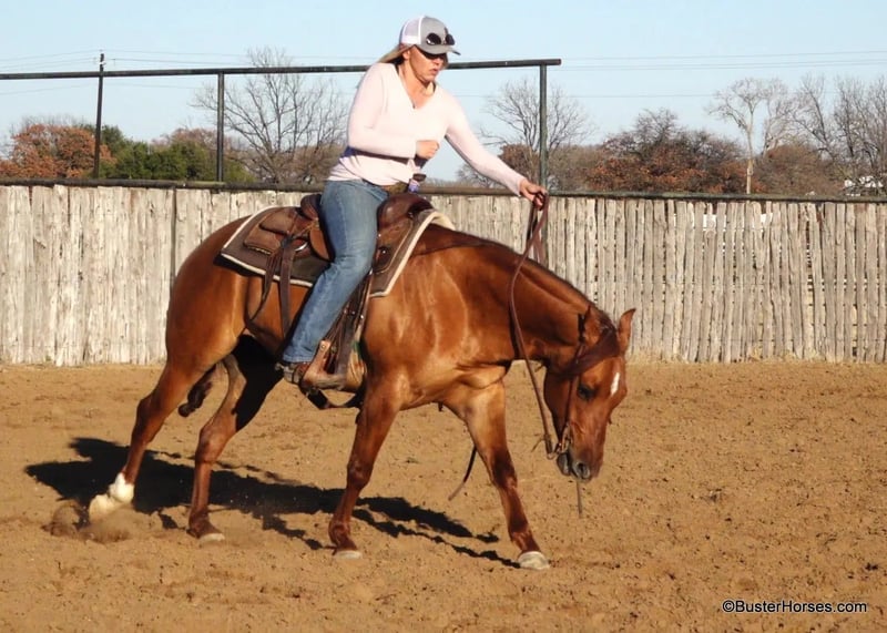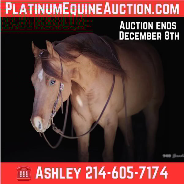 ONLINE AUCTION Place your bids at www.PlatinumEquineAuction.com Starting Bid $3500 Auction ends December 8th, 2024 Need a new saddle? Check out White Rock Saddles on our website or Facebook! “King Julien” – 14.2H, 2017′ red dun AQHA gelding Julien is a gorgeous, fancy well-bred, professionally trained, great minded gelding. He is by an own son of Gunners Special Nite, and out of an old school reining/ cowbred mare He is the perfect age that everyone is looking for! He is an easy size and has tons of body can easily carry the big riders (the model in the video is literally 6’2 and ALL legs!) but he is a comfy, easy height, for the smaller people and the kiddos. Easy to saddle, bridle, lead, and step on and off of! Julien was started as a reining horse and was in one of the top programs when he was younger. Since then he has been a fun pasture pet for his owners, and a deluxe absolutely stunning pleasure horse and trail horse. He loves going to town and thrives in new environments, he is comfy as could be in all of the commotion – he loves all the sights, sounds, people, and new things to see! He would be a great all-around horse. He has enough cow to do a little roping, he has been used a little on the ranch and has been started on the roping sled, slow trotters, and has drug lots of tires, logs, and the arena drag. He is a show baby and absolutely loves to be spoiled and kept up in the barn, however he has been kept turned out and is happy being just out with the horses as well. He has exceptional ground manners – is great for the vet and the farrier, he loves a bath, he always hops right on the trailer, and he stands tied quietly. If you are looking for a prime age gorgeous gelding that could go do just about anything you want to try, then don’t look past Julien! Please call anytime for more information at 214-605-7174 Julien is located in Weatherford, TX – one hour from Dallas / Fort Worth International Airport. He is an easy day trip or fun overnight trip to come try out, from anywhere! We are experienced knowledgeable sellers and we can help with quickly arranging affordable shipping to any buyer’s location – we have experience shipping horses worldwide – including regularly to Hawaii, Canada, Mexico, Europe, and South Africa. Go to our Facebook page Buster Ranch and check our website for buyer reviews, for more videos, additional info: etc: https://busterhorses.com/King-Julien ONLINE AUCTION Place your bids at www.PlatinumEquineAuction.com Starting Bid $3500 Auction ends December 8th, 2024 Need a new saddle? Check out White Rock Saddles on our website or Facebook!