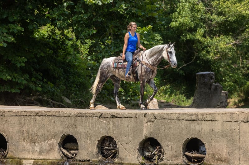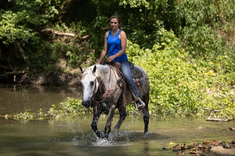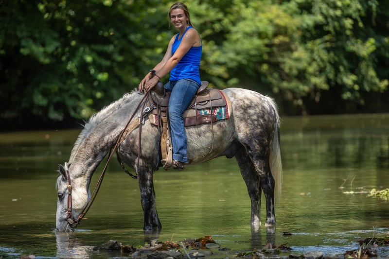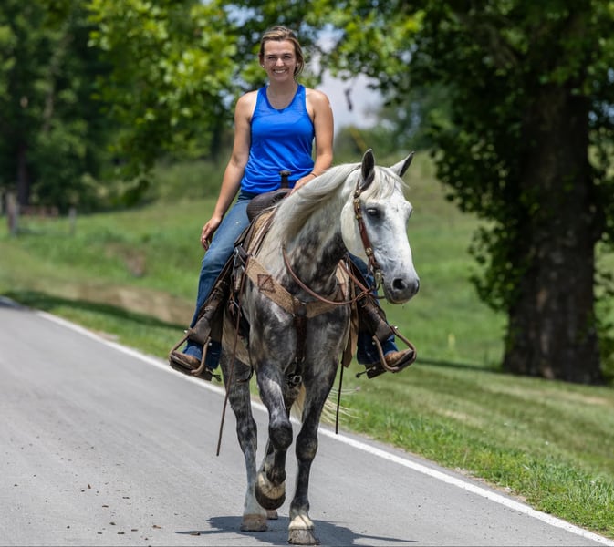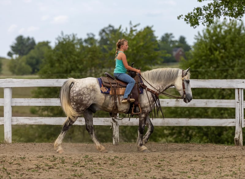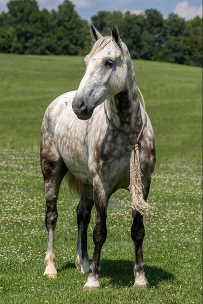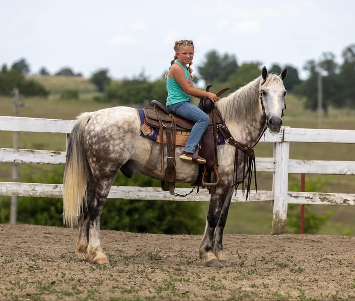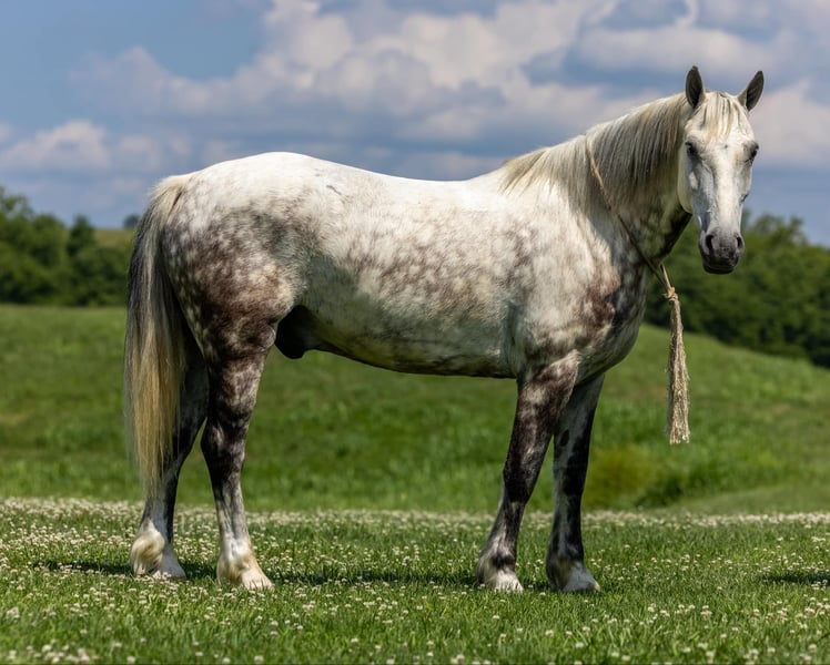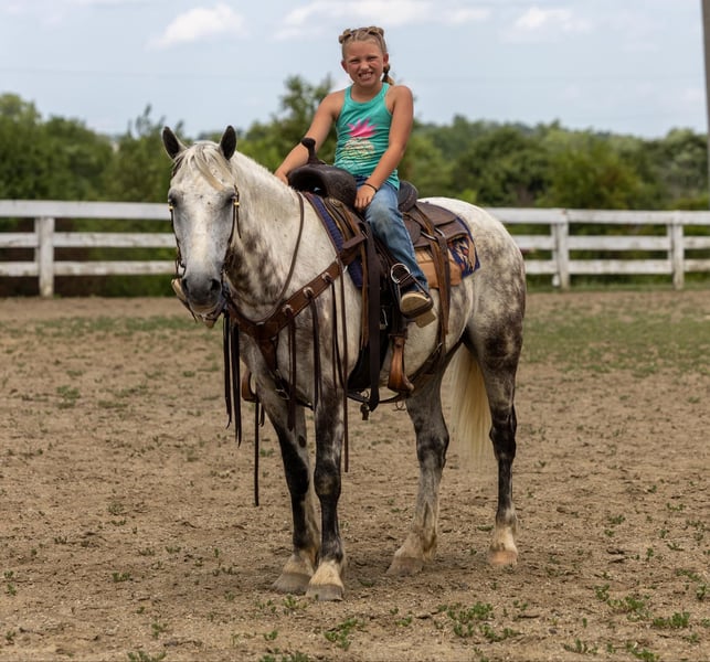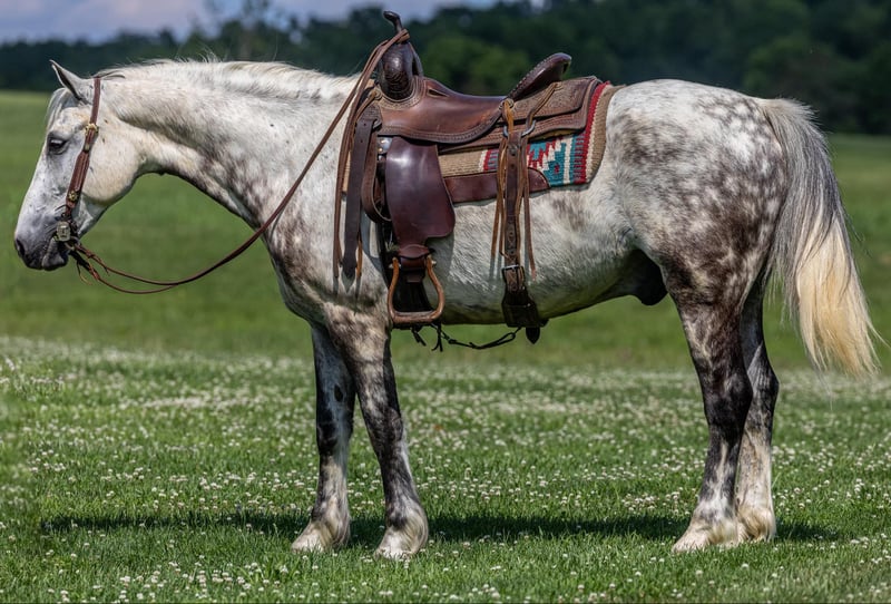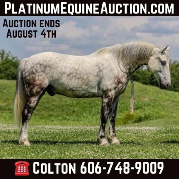 ONLINE AUCTION Place your bids at www.PlatinumEquineAuction.com Starting Bid $3500 Auction ends August 4th, 2024 Need a new saddle? Check out White Rock Saddles on our website or Facebook! Goose is the top gun around here! This beautiful Haflinger x Quarter horse gelding has got it all. Standing at 14.2 hands tall, he is the man for any job! Goose makes trail riding a breeze for anyone. He is surefooted, brave and gentle as can be. Take him on any trail under saddle or hitch him up and drive him to town if that’s more your style, his beautiful grey dapples will make you stand out in any crowd. Traffic broke and an absolute gentlemen at all times. He is willing to please, and at only 7 years old- he is level headed, experienced and in his prime. Goose is easy going and never hesitates to do as he is asked, whether that be crossing obstacles, going through water, or teaching the kiddos the ropes and reins. He is forgiving of beginner hands and a pleasure for those with more experience. No matter your level, you will be sure to enjoy your time with Goose. For any questions please call or text Colton at (606) 748-9009 or Haley at (859)475-2621 Thank you, PR QUALITY HORSES. ONLINE AUCTION Place your bids at www.PlatinumEquineAuction.com Starting Bid $3500 Auction ends August 4th, 2024 Need a new saddle? Check out White Rock Saddles on our website or Facebook!
