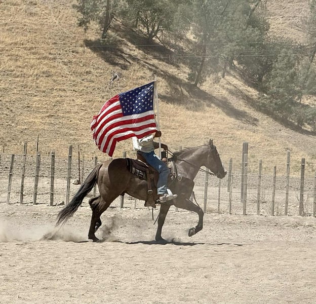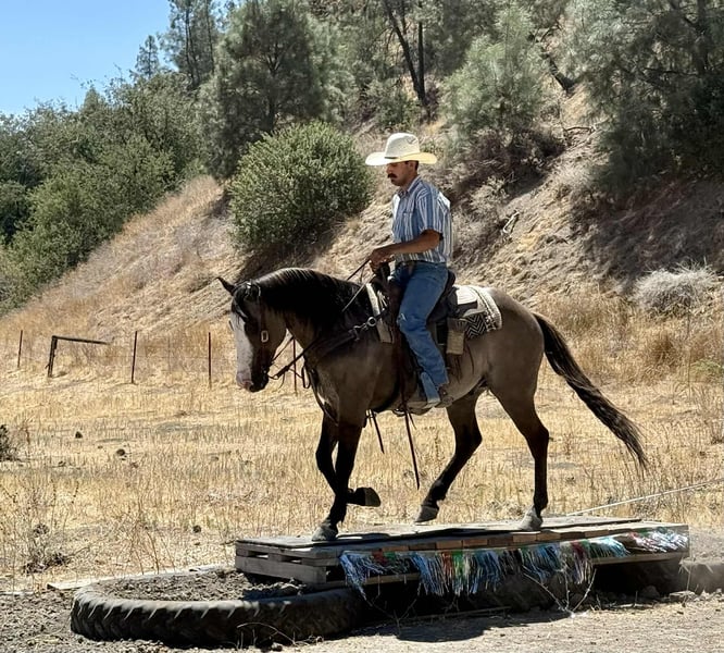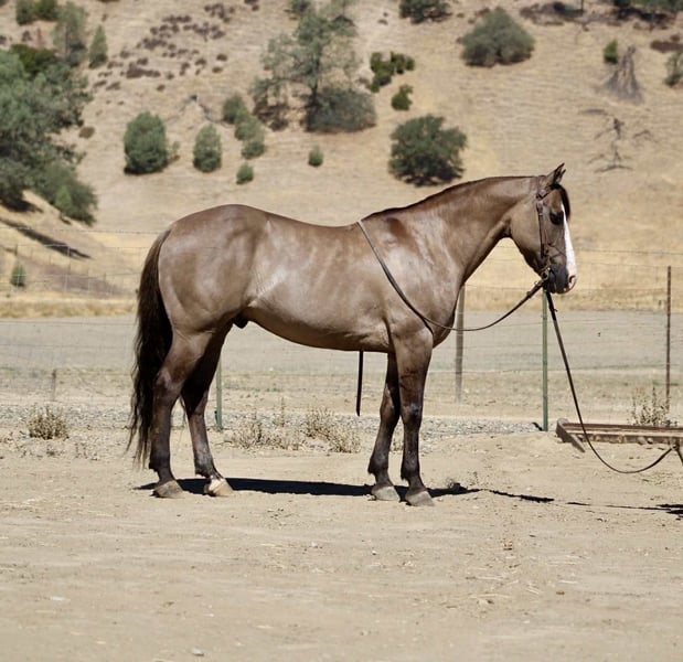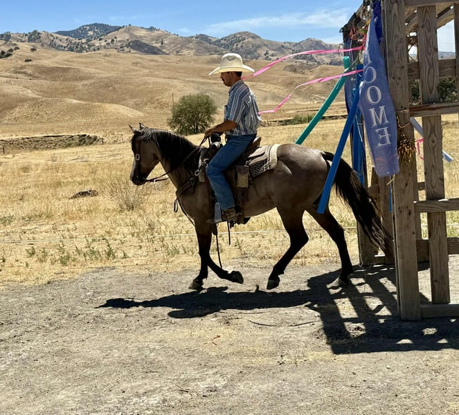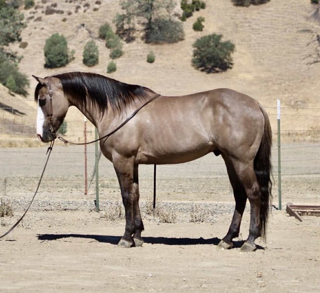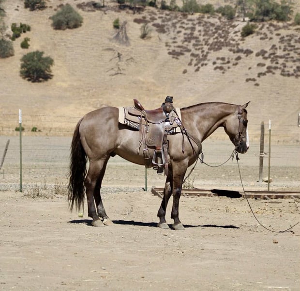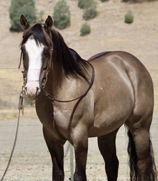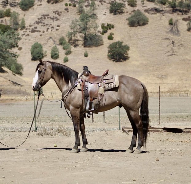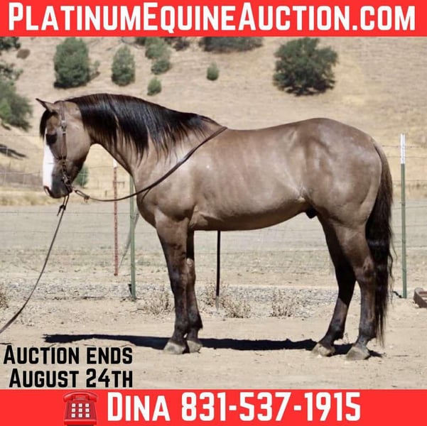 ONLINE AUCTION Place your bids at www.PlatinumEquineAuction.com Starting Bid $3500 Auction ends August 24th, 2025 Need a new saddle? Check out White Rock Saddles on our website or Facebook Anchor – As Handy as They Come! Need a horse that shows up ready to work, looks good doing it, and doesn’t fall apart when things get western? Meet Anchor—an 8-year-old, 14.2-hand grulla gelding with tiger-striped legs, a calm mind, and a get-it-done attitude. He’s the kind of gelding that’s just plain useful—no gimmicks, no quirks, no surprises. Anchor’s been used outside and knows what a real day’s work looks like. He’s gathered cattle, crossed creeks, climbed hills, and pushed through brush without blinking. Dogs, traffic, ranch equipment—he’s seen it all and keeps his cool. He’ll cruise right down the road with trucks flying by and never miss a step. Whether you’re riding out alone or moving pairs across the pasture, he stays level-headed and tuned in. And the best part? He’s broke-but not overcomplicated. He saddles quiet, walks off soft, and gives you the same ride every time. He’s responsive without being touchy, handy without being hot. In the arena, he moves off your leg, lopes off smooth, stops when you ask, and handles a flag, gate, or tarp like he’s done it a hundred times. He’s just one of those horses you trust instantly. He’s also been exposed to every obstacle we can think of—tarps, flags, bouncy balls, pool noodles, tires—and never once acted like a fool. We’ve tossed it all at him, and he just takes it in stride like it’s no big deal. Anchor is great to haul, stands tied like a gentleman, tacks up without issue, and doesn’t get buddy sour or barn sour. He’s easy to catch, respectful on the ground, and gets along with both geldings and mares. He’s just as chill in a stall as he is in a big pasture. This isn’t the kind of horse you have to “ride every day” or prep with groundwork. Let him sit a few days, saddle him up, and go on with your business. He’s honest, he’s dependable, and he’s sharp enough to be fun without giving you a hard time. If you’re looking for a good-looking, well-rounded gelding that’s safe, smart, and ready to go to work—or just be your favorite trail buddy—Anchor’s the one. Available to try at Longhorn Ranch in Paicines, California 📞 Call or text Dina at 831-537-1915. ONLINE AUCTION Place your bids at www.PlatinumEquineAuction.com Starting Bid $3500 Auction ends August 24th, 2025 Need a new saddle? Check out White Rock Saddles on our website or Facebook