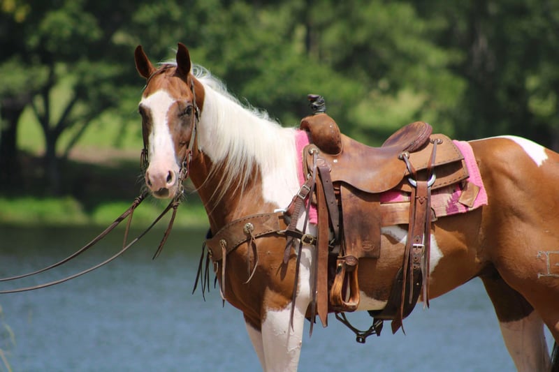 ONLINE AUCTION Place your bids at www.PlatinumEquineAuction.com Starting Bid $3500 Auction ends August 18th, 2024 Need a new saddle? Check out White Rock Saddles on our website or Facebook! Wishbone is a super flashy paint gelding. He is the perfect age of 7 years old. He stands 14.3 hands tall. Wishbone has some very unique markings and he definitely stands out in a crowd! Wishbone is a seasoned trail horse, he’s been used around cattle and tracking the dummy. He also has done many charreadas as a teenage boys mount. He has been ridden all over the place and is traffic safe. He is used to dogs being underfoot. Been around all forms of farm equipment. He is absolutely willing to do whatever is asked of him honestly and tries very hard to please. Wishbone has a wonderful handle to him, he one hand neck reins and has a big stop. He has a beautiful slow lope that you could ride all day! Wishbone is good for baths, the shoer, loading and unloading in the trailer and is extremely easy to catch. He takes a saddle and headstall well. Wishbone is safe and gentle for most any level of rider. He is so much fun to ride and we have really enjoyed him. Please do not hesitate to call or text Alicia Darling 903-840-8010 with any questions. Located in Willis Point, TX. ONLINE AUCTION Place your bids at www.PlatinumEquineAuction.com Starting Bid $3500 Auction ends August 18th, 2024 Need a new saddle? Check out White Rock Saddles on our website or Facebook!