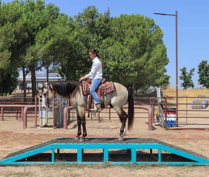ONLINE AUCTION Place your bids at www.PlatinumEquineAuction.com Starting Bid $3500 Auction ends August 18th, 2024 Need a new saddle? Check out White Rock Saddles on our website or Facebook If you are looking for SAFE for your mom/dad/grandma/the kids/ your friends/ the neighbor stop what you’re doing and look at Bo! Meet Bo he’s a 7 year old 14.2 hands gelding. This guy has sure been a joy to have around he’s been the easiest horse there is. We have thrown anybody and everybody on him and he’ll pack them around no matter what. His stunning color and mane and tail draw attention where ever this guy goes! Everyone always turns their heads and wants to pet this sweet boy and he will take it all in. He is a puppy dog he’ll be happy to hang out in the backyard with you and eat some grass or get pampered and braided it’s his favorite. He is FANCY broke he has a great stop, good spins each way, picks up his leads. Bo has the slowest smoothest rocking horse lope you could want one to have. He is a more woah than go kind of horse he’s happy to just cruise down the trails! He’s a saint on the trails he goes through water, logs, ponds, creeks,waterfalls, the beach he’s a been there done that attitude. He’s seen bikes, hikers, wildlife, and more. Bo is also a finished heel horse and is quiet in the box does not get hot scores like a rock. He can continue to rope or change his career and just be your next leisurely trail horse or horse for the grand kids. He’s been through all the obstacles with out a care in the world like it’s just another day. Bo has also been ridden in town with rushing traffic, semis, horns honking, kids running around, motorcycles you name it! Bo stands to be groomed, saddled, bathed, farrier. He loads up easy as they come doesn’t rush to get out or in the trailer takes his time. He is great with other horses in pasture or in a stall. He is ready for his brand new adventure! Please watch Bo’s whole video as it shows EVERYTHING this special boy can do. People drive the wheels off there truck looking for a horse like this and here he is! Please feel free to reach out to us at KW Ranch and Performance Horses Kamryn 530-852-2032 for anymore info on Bo! Located in Pleasant Grove, CA. ONLINE AUCTION Place your bids at www.PlatinumEquineAuction.com Starting Bid $3500 Auction ends August 18th, 2024 Need a new saddle? Check out White Rock Saddles on our website or Facebook