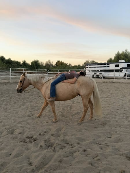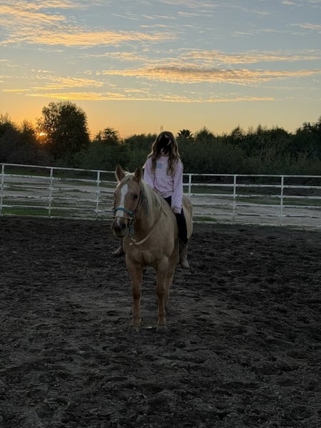"AVAILABLE ON ONLINE HORSE AUCTION AT www DOT PlatinumEquineAuction DOT com BIDDING OPEN NOW thru SUNDAY | MARCH 15TH! *Final price will be determined on auction site* CONSIGNOR CONTACT INFO: Cheyenne Rey 831-537-8746 LOCATION: Bitterwater, CA Bingo is an 9 year-old stunning palomino gelding standing at 14.3 hands. This boy is truly the perfect all around partner, people search endlessly to find a horse of his gentle nature and train ability. He is playful, talented, and gentle to the core. Bingo loves people, and is a friendly as you will ever find. He’s ridden both English and Western styles and shines equally in both disciplines. Trained to be low-headed, soft, and collected, he offers an easy-to-sit jog, a smooth lope, and seamless gait transitions. When you ask him to stop, Bingo plants his hind end and also responds with a smooth, collected reverse. He’s been hauled extensively across the West Coast, confidently navigating everything from crashing ocean waves and deep forest trails to bustling downtown streets with zooming cars. No matter the situation, Bingo remains steady, calm, and unfazed. He can be trusted with your toddler or your grandmother on his back in the most chaotic of scenes. He’s familiar with all kinds of trail obstacles bridges, streamers, tarps, balls, flags and is ready to compete in ranch trail classes with confidence. Bingo’s personality is pure puppy dog, he’ll meet you at the gate every time, loves to be close, and thrives on affection. He’s also a proven lesson horse, having safely introduced novice and beginner riders to both English and Western riding. He’s even been trusted over small jumps with children, making him a reliable and patient partner. On the ground he is super respectful and full of manners. He will Literally put his own head in a halter eager to go with you. Stands quietly for tacking, great with his feet horse farrier and easy to clip. Bingo is the most well rounded gelding and there isn’t a bad thing I can say about him. If you’re looking for a loving, versatile, and dependable horse who’s ready for fun and work alike, Bingo is your guy! He truly is a one in a million horse and is ready to go in any direction his new partner would like to take him. Please come see him for yourself and you won’t be disappointed, if there’s something not in the video you would like to see, please contact me and I will get it to you! He is located in Bitterwater, CA. Please call Cheyenne at 831-537-8746 to talk more about this amazing gelding.