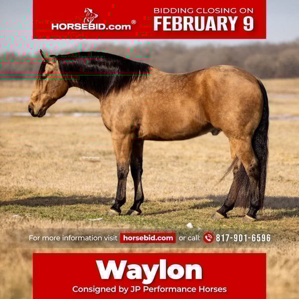 ❤️🔥𝑩𝒆 𝑴𝒊𝒏𝒆 𝐒𝐄𝐋𝐄𝐂𝐓❤️🔥 Happening now thru MONDAY | FEBRUARY 9th - Available EXCLUSIVELY on HorseBid's website! For more details and to register visit: www.Horsebid.com CONSIGNOR CONTACT: JP performance Horses 817-901-6596 LOCATION: Weatherford, TX BREED: Quarter horse REGISTERED: Yes REGISTERED NAME: Pep’s Lucky Buck COLOR: Buckskin HEIGHT: 15.1 AGE: 9 GENDER: Gelding Looking for the perfect horse is difficult—however, Waylon is as close to perfect as you could drive thousands of miles to find. From heading steers, ranch work, trail riding, packing the little ones, and being truly grandma-safe, he checks every box imaginable in a horse. We have put him through every test possible, and he handles everything with ease, confidence, and comfort. Absolutely no silliness whatsoever. Literally a baby could ride him. His stunning dappled buckskin color as well as his kind eye is just perfection! You can step into the arena and go head a steer on a pro-level performance horse, then step out and put your 2-year-old on him, and he will take care of that child like gold. Waylon is truly one of a kind—dependable, consistent, and always willing to give his best. He meets you at the gate for affection, gets along great with other horses, and is an easy keeper. Waylon is a proven, pro-level head horse, suitable for an advanced roper all the way down to a beginner. He stands in the box and scores like a statue, runs hard, and rates perfectly, making him an ideal partner whether you’re learning to rope or chasing the NFR. He is extremely soft in the bridle—so soft he rides just as well bridleless. He’s trained like a reiner, with a big stop when asked, or simply saying “whoa” and he’s there. He is very responsive, smooth, and user-friendly. We have even ridden him English and popped him over jumps, and he loved it. Honestly, there isn’t anything we have asked of him that he hasn’t excelled at with ease. Waylon loves the trails, goes through water, and we’ve even fished off of him. He is a true gentleman at all times. He comes from a long line of top-notch show horses and could easily succeed in multiple AQHA disciplines—from Ranch Trail and Ranch Pleasure to Team Roping and beyond. Waylon will sidepass to open and shut gates and never hesitates or says no to anything asked of him. He ground ties to be saddled, stands perfect for farrier, loads and unloads in trailer with ease, stands quiet for mounting and waits for you to queue him before he takes a step. Waylon is the kind of horse that only comes around once in a lifetime. It’s getting harder and harder to find this kind of horse because most people don’t sell them. Unfortunately we can’t keep them all and we are blessed to offer such a nice gelding to the public. The training and temperament Waylon has is simply “THE BEST”! He is up to date on coggins, current X-rays on file and ready for his Forever home. Please don’t hesitate to call or text Jackie with JP Performance Horses at 817-901-6596 to schedule a time to come try him or we can FaceTime anyone that lives far away. We are happy to talk about Waylon as he’s truly been one of the very best horses that we have owned. Shipping can be arranged anywhere.