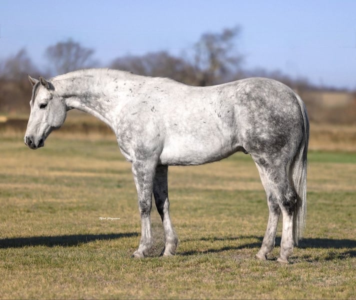 ⚜️𝓽𝓱𝓮 𝐆𝐎𝐋𝐃 𝓢𝓮𝓵𝓮𝓬𝓽⚜️ Happening now thru MONDAY | MARCH 23rd - Available EXCLUSIVELY on HorseBid's website! For more details and to register visit: www.Horsebid.com CONSIGNOR CONTACT: Webster Horses 817-559-3178 LOCATION: Ponder, TX BREED: QH REGISTERED: No COLOR: Gray HEIGHT: 15 AGE: 9 GENDER: Gelding Smokey is a 9yo 15hh beautiful gray gelding with dark points and webbing on his legs! Hes super flashy and is as solid of a horse as you will find. Smokey is 100% sound in every way. He is very fancy broke, spins both ways and has a nice soft turn around when you ask for it. He breaks at the poll and will never lift his head. Has a great headset and has had a lot of training that sticks with him. This horse is so easy to ride, he is so soft and broke just naturally. He carries himself so classy and you can feel that when you’re on his back. He has great feeling movement and is actually fun to ride regardless of what you’re doing on him. He’s comfortable and easy just being a basic trail/family horse or he’s broke enough to go in any direction in a ranch trail or obstacle course. He’s broke enough you could absolutely rope on him and he’s smart and willing enough he’d finish very easily. I can’t say enough good things about how civil this horse rides. He’s truly as broke as you could ask him to be. He will short lope off, and when you ask him to stop he has a beautiful stop! He has all the tools to do anything you want with him, but he’s gentle and good minded enough if you just want an exceptionally broke and easy going horse to love on he’d be great for that too! We really love his personality. He’s very sweet and loves attention. Stands all day for you to pet and brush on him. He’s good with his feet. Extremely easy to catch.. stands to be saddled and mounted.. etc. You name it Smokey will do it! He loads great in a slant load or open stock and backs off nice. Smokey has been hauled all around to different areas so he is not green in traveling. He isn’t buddy/barn sour when riding out either. He’s cool with being alone but is great with other horses too. Smokey is super easy all the way around. If you have any questions at all or want to set up a PPE at buyer's expense text Olivia at 817-559-3178. Shipping can be arranged anywhere.