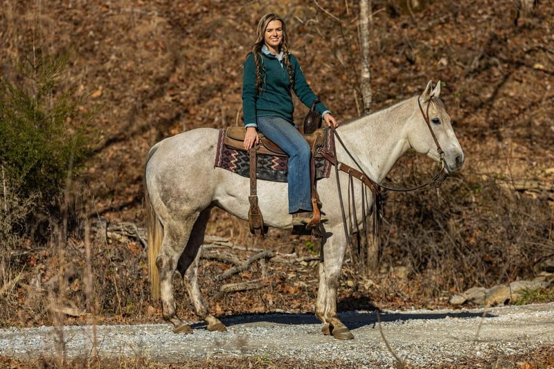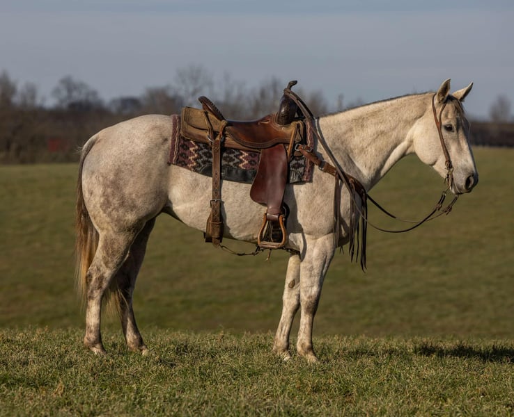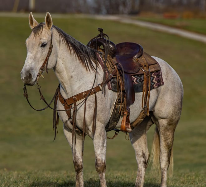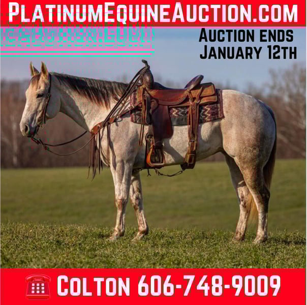ONLINE AUCTION Place your bids at www.PlatinumEquineAuction.com Starting Bid $3500 Auction ends January 12th, 2024 Need a new saddle? Check out White Rock Saddles on our website or Facebook! INTRODUCING “AA CENTU BEE MY COLO” Also known as “Pearl.” Pearl is an AQHA-registered mare with the movement, temperament, and versatility to become your next partner in the ring or on the trail. At 15 hands tall and just 7 years old she is very athletic as movements are stunning. She has a very floaty jog & a rocking chair lope, she would make a natural fit for ranch trail classes. Her stops are controlled and BIG. Pearl is as versatile as they come, with a great foundation built on the ranch. Shes been trail-ridden extensively, worked cattle, and is no stranger to the demands of ranch life. She has also been used on the heel side in team roping. She is very handy. Super soft in the mouth. She responds well to leg cues and body cues. She will canter a nice circle, while catching both leads. She will neck rein with ease and back up when asked. Very soft in the mouth and very responsive. Always aims to please! Pearl will greet you at the gate. She stands to be tacked, bridled, groomed & shod. She stands for a mounting block for mounting and dismounting. Shes a very personable horse and is super gentle and easy to get along with. As a barn favored when people visit, Pearl is also one of our favorites we’ve had to offer. From her personality to her ride, Pearl is the ONE. If you’re looking for a BEAUTIFUL, BROKE & GENTLE partner; in the ring, in the box or even just on the trail; we believe Pearl is for you. For anymore information please contact the PR QUALITY HORSES Colton 606-748-9009 or Haley 859-475-2621 Located in Ewing, KY. ONLINE AUCTION Place your bids at www.PlatinumEquineAuction.com Starting Bid $3500 Auction ends January 12th, 2024 Need a new saddle? Check out White Rock Saddles on our website or Facebook!
