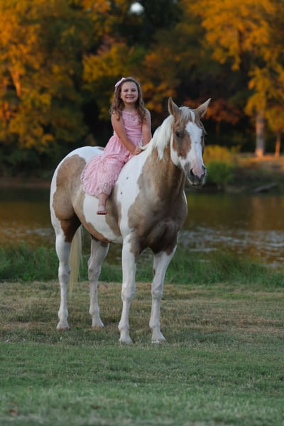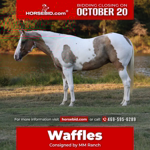♦️ 𝐭𝐡𝐞 𝐀𝐌𝐄𝐑𝐈𝐂𝐀𝐍 𝓕𝓪𝓵𝓵 𝓒𝓵𝓪𝓼𝓼𝓲𝓬 ♦️ Happening now thru MONDAY | OCTOBER 20th - Available EXCLUSIVELY on HorseBid's website! For more details and to register visit: www.Horsebid.com CONSIGNOR CONTACT: MM Ranch 469-595-6289 LOCATION: Forney, TX BREED: Quarter Horse REGISTERED: No COLOR: Palomino Paint HEIGHT: 15 AGE: 9 GENDER: Gelding 🧇🧇 Let me tell you about Waffles 🧇🧇!!! He is a gorgeous palomino paint gelding you can take to the shows or hit the trails and truly enjoy as a family all around horse!!!! One that is bombproof for anyone to ride!!! He is SAFE and fun to ride. 👉🏼SHOW EXPERIENCE: Waffles is a natural in the show ring. Very comfortable. Acts the same as he does at home. He's been shown at the local shows in western pleasure classes, ranch trail classes, reining classes, and the working cow horse. Waffles is the type you can enjoy and learn on. He's responsive to your seat and leg but not overly responsive or overly sensitive. He will go just as fast or as slow as you'd like. He's got a comfortable easy and comfortable rocking chair lope, automatic lead changes, an easy stop, and turns around correct and pretty. 👉🏼ENGLISH EXPERIENCE: Waffles also rides English and goes over the jumps. He's so open minded and willing you could take him to the hunter classes and really hold your own! He packs his head low and correct and goes right to the jumps! Very pretty mover. 👉🏼TRAIL EXPERIENCE: Waffles loves to trail ride!! Down the road, through the woods or take him swimming! He loves going new places!! He doesn't mind traffic, dogs or wildlife. He goes up and down the big hills carefully and easily and he goes right into the water! He loves to play and splash in the river! He will ride front, middle or back of the pack. Not at all buddy soured if you like going out on the trails alone. 👉🏼DISPOSITION: Waffles is extremely sweet and loves being loved on. He comes right to you and puts his head in the halter. He loves kisses and having his ears scratched. Waffles is very quiet and easy to ride and be around. He's got a very go with flow way about him. He doesn't get upset when his rider gets off balance or in his face. He's very forgiving if you mess up or give the wrong command. He would really make an excellent addition to a lesson program or just a casual rider wanting a very broke horse to enjoy! 👉🏼UPKEEP: Waffles is an easy keeper. He's currently eating alfalfa hay. He is UTD on everything and currently in shoes all the way around. He does perfect barefoot. Has good hard solid feet. We just put shoes on him this round to take him and ride him through the rocky trails. 👉🏼LOADING: Waffles loads and hauls like a dream. Very quiet and patient in and out of the trailer. He stands quietly tied to the trailer at the horse shows. No pawing or throwing a fit if left alone either. So makes it so easy if you want to go to the shows or trail rides with just one horse. 👉🏼TURNOUT: Waffles he can be by himself or in a group in the pasture. We've had him out with mares, geldings, mini ponies, mini cows, mini donkeys, etc.. without any fussing or drama. He is middles of the pecking order. Gets along with everyone. 👉🏼GROUND MANNERS: He is great on the ground. Respectful of personal space. He stands like a dream for grooming, washing, saddling, mounting block and he takes the bit easily. He will stand single tied and crosstied. Doesn't mind dogs, goats, small children around his feet. 👉🏼BAD HABITS/ VICES: Waffles has absolutely NO bad habits or vices. Absolutely no buck, no rear, no bolt, no bite, or no kick. I cannot say it enough, this horse is a saint!!! He does not need to be warmed up or tuned up before you can go for a ride either. You can catch him straight out of the pasture and get on him. Even if it has been a few months since you rode him last. That’s a big plus in our books. Cause life gets busy and sometimes hard to make time to ride everyday. With him you don’t have to worry about that. 👉🏼TACK: We've ridden Waffles is anything from a halter and lead rope to a snaffle to a correction bit. Our go to bit of choice for him is a medium shank snaffle. English, western, bareback, backwards, sideways, forward, doesn’t matter to him. As long as he is getting attention from you he is happy!! 👉🏼SHIPPING: we can and will help arrange affordable shipping anywhere. We will provide a new coggins and health certificate when sold. He is up to date on all shots, feet, teeth, etc.. He is 100% ready for his new home. Ready to be rode and enjoyed.