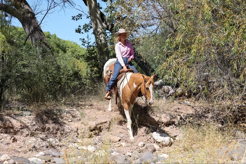 ONLINE AUCTION Place your bids at www.PlatinumEquineAuction.com Starting Bid $3500 Auction ends November 17th, 2024 Need a new saddle? Check out White Rock Saddles on our website or Facebook! Dicey is a 7 year old grade paint gelding standing 15hh. This gelding is an absolute blast to ride to matter what job you give him! Take a stroll through town, meander on down the trail, go do a solid days work around the ranch, or turn some steers in the roping pen! You name it and Dicey will do it! We have done absolutely everything you can do around a ranch on this magnificent gelding and have had all levels of riders on his back. Not only is Dicey unbothered and handy outside, he’s also a pleasure to ride in the arena! He will walk, trot, and lope both ways and has a nice smooth gait. Great neck rein, good stop, and an absolute blast to rope on! Dicey is not only handy, but an absolute joy to be around. Easy to catch, good to groom, saddle, bathe and shoe! If you’re looking for a magnificent all around gelding, Dicey is your man! Transport can easily be arranged anywhere in the US! Located in Camp Verde, AZ Contact D/C Equine Services Dallas 804-322-2233. ONLINE AUCTION Place your bids at www.PlatinumEquineAuction.com Starting Bid $3500 Auction ends November 17th, 2024 Need a new saddle? Check out White Rock Saddles on our website or Facebook!