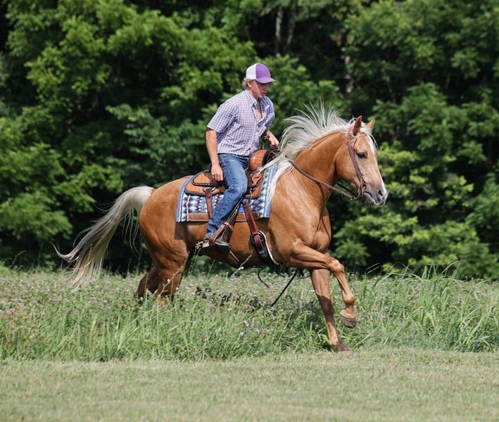 ONLINE AUCTION Place your bids at www.PlatinumEquineAuction.com Starting Bid $3500 Auction ends July 21st, 2024 Need a new saddle? Check out White Rock Saddles on our website or Facebook! ARC Jacs Gold Charm is living proof that Dream horses do exist! Talk about a horse that gets ALL of the looks where ever he goes!!! Jac is a super stout built Golden Palomino 2017 Registered AQHA gelding standing around 15.1hh. I’v had Jac since back in the winter and he has been used to around cattle, pasture roped and used to doctor as well. He has been ridden down the highways, we have had him in town and he is very traffic safe. Jac is great on trails and he will cross creeks, ditches, logs and navigate rough rocky areas. He has a smooth jog, a VERY VERY nice easy to set lope, a good stop, turns a circle both ways and backs with ease! He has been exposed to all kinds of wildlife such as deer or turkey or other animals like cows or dogs and will go anywhere that he is asked too. He has been rode many miles in the mountains of Eastern Kentucky and encountered every obstacle possible on the trail. He will go up or down even the steepest slopes, across deep creeks, over downed trees, and over all types of rough terrain while still being sure footed. Jac is a gentle, laid back type of horse that is not in a hurry and would be a great horse for the whole family! Jac is not cinchy, cold backed, does not crib or weave. Located in Level Green, KY. Feel free to call Moore Trained Horses Logan 765-265-0033 with any questions. ONLINE AUCTION Place your bids at www.PlatinumEquineAuction.com Starting Bid $3500 Auction ends July 21st, 2024 Need a new saddle? Check out White Rock Saddles on our website or Facebook!