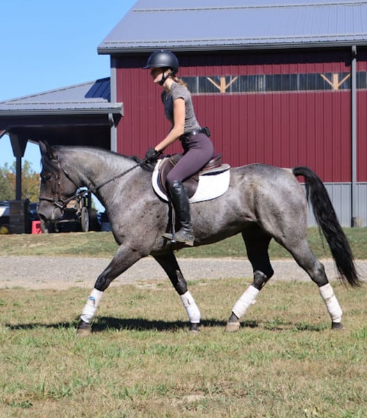 ⚜️ 𝓗𝓮𝓻𝓲𝓽𝓪𝓰𝓮 𝐖𝐢𝐧𝐭𝐞𝐫 𝓒𝓵𝓪𝓼𝓼𝓲𝓬⚜️ Happening now thru MONDAY | DECEMBER 29th - Available EXCLUSIVELY on HorseBid's website! For more details and to register visit: www.Horsebid.com CONSIGNOR CONTACT: Blackstone Stables 248-390-6831 LOCATION: Howell, MI BREED: Quarter horse REGISTERED: No COLOR: Blue Roan HEIGHT: 15.1 AGE: 8 GENDER: Gelding Meet Sky, he is an 8 year old 15.1hh true blue roan grade quarter horse gelding. Sky has the most stunning color you will see! He has a gorgeous black mane and tail that compliments his blue roan coat beautifully. Sky has nice sturdy conformation. He has some of the best ground manners you may see on a horse. He stands tied anywhere, to anything, as long as you like. He's extremely patient for grooming, tacking and just to be doted on. Sky has mainly been a trail horse. He's been ridden on the road, in open fields and deep woods. He has also been ridden in the arena. Sky will walk trot and canter with ease. His transitions are effortless. He has a happy go lucky attitude and a great work ethic! Sky can live inside or outside and gets along very well with all other horses and ponies in turn out. If you're looking for a stunning blue roan that can go in any direction, check out his video!!