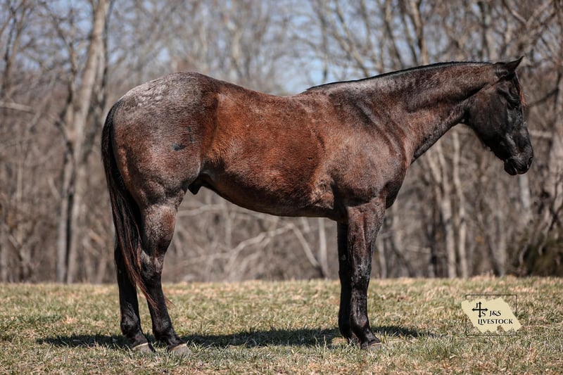ONLINE AUCTION Place your bids at www.PlatinumEquineAuction.com Starting Bid $3500 Auction ends March 30th, 2025 Need a new saddle? Check out White Rock Saddles on our website or Facebook! PR BUCKS BLUE DRIFT… better known as B.B. around our place- is one of the nicest, and most willing ranch horse geldings we have ever had the pleasure of using. B.B is a true blue roan AQHA gelding standing 15.1 and is built like a using horse should be. He has been used out in the pasture catching, doctoring and loading cattle for a living, along with halter-breaking colts, riding fences, trail riding and everything in between. He truly is a versatile gelding around our place and will always get the job done for you. He is a gelding that will last you all day on the job and give you his all every step along the way. B.B. knows his job and is ready to go to work at any given moment. He is one hand broke, side passes with ease, will work the gates, hold the holes and stay ground tied all day. You won’t find much that phases this gelding. He is truly as user friendly for anyone wanting a ranch horse as they come. B.B. is not an (in your pocket) type gelding, however, even though he may not be looking to be someone’s next pet, don’t let the heart this horse has fool you. Not only does he have the grit and dedication to get any job you need done about the ranch, but the mindset it takes to get the job done correctly. So if you’re looking for a true handy, ranch gelding to go out and get the job done and look flashy while doing it, then B.B. might just fit into your herd. If you have any questions, would like to make a Buy It Now Offer or set up a Facetime Call, contact J & S Livestock JT 931-698-7159 Located in Santa Fe, TN. ONLINE AUCTION Place your bids at www.PlatinumEquineAuction.com Starting Bid $3500 Auction ends March 30th, 2025 Need a new saddle? Check out White Rock Saddles on our website or Facebook!