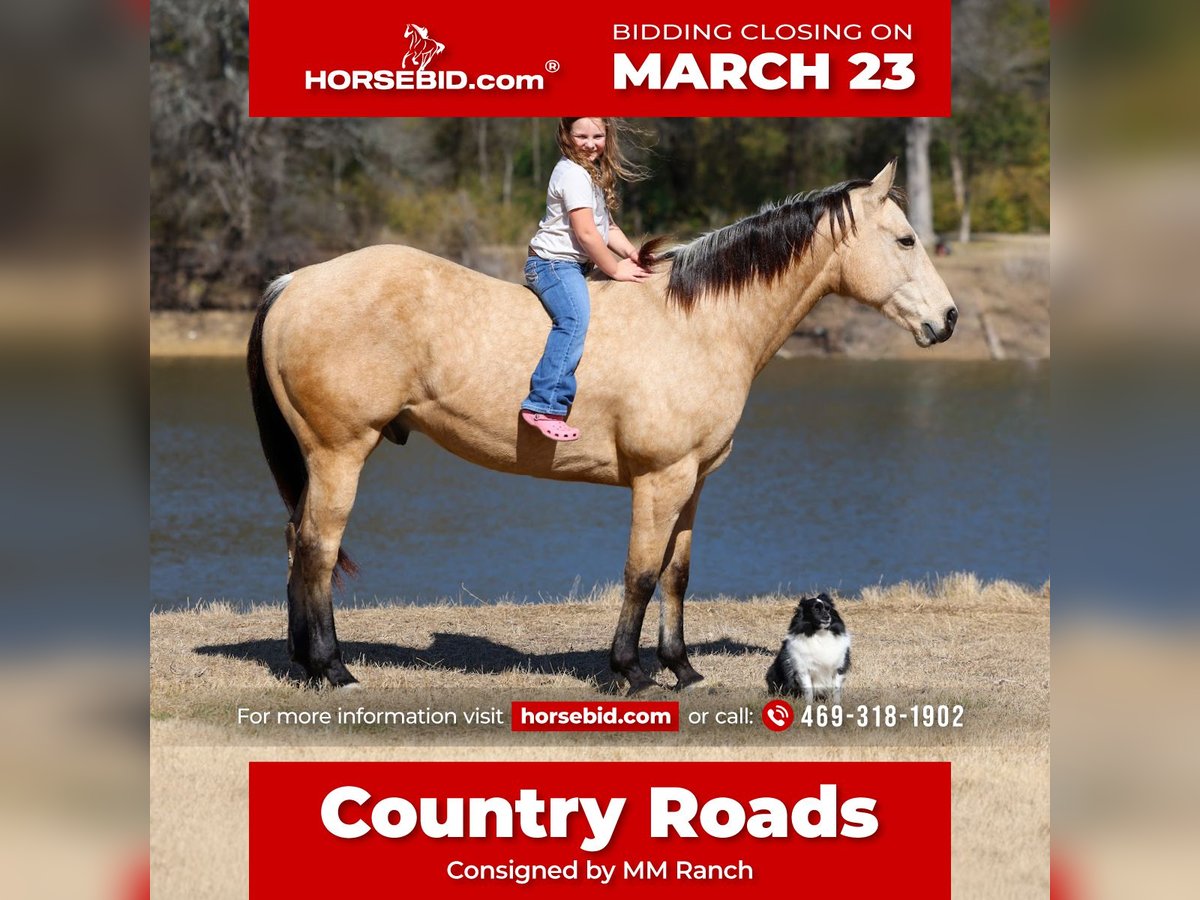 ⚜️𝓽𝓱𝓮 𝐆𝐎𝐋𝐃 𝓢𝓮𝓵𝓮𝓬𝓽⚜️ Happening now thru MONDAY | MARCH 23rd - Available EXCLUSIVELY on HorseBid's website! For more details and to register visit: www.Horsebid.com CONSIGNOR CONTACT: MM Ranch 469-318-1902 LOCATION: Forney, TX BREED: AQHA REGISTERED: Yes REGISTERED NAME: MAXIMUS CLABBER COLOR: Buckskin HEIGHT: 15.2 AGE: 9 GENDER: Gelding 🎵 Country Roads is a gorgeous registered AQHA dappled buckskin gelding you can take to the shows or hit the trails on and truly enjoy. He is hands down a perfect all around horse!!!! He is SAFE for anyone to ride. He is at the perfect age of just 9 yrs old. He stands 15.2 hands tall. 🎶 Country Roads is my favorite song by John Denver!! It brings back so many memories from my childhood. Riding horses with my mom and her singing to me. But it also fits him. He is one of those kind of horses that you will want to take down country roads and enjoy. That will feel like home. Safe and secure. The kind of horse you and your family will make so many memories on. 🎶 SHOW EXPERIENCE: Country is a natural in the show ring. Very comfortable. He's been shown at the local shows in the 4H western pleasure classes and ranch trail classes. Just local shows for fun. 🎤 Country Roads is the type you can enjoy and learn on. He's responsive to your seat and leg but not overly responsive or overly sensitive. He will go just as fast or as slow as you'd like. He prefers the slower side of things. He's got a comfortable easy and comfortable lope, knows his leads, an easy stop, and turns around correct and pretty. ENGLISH EXPERIENCE: Country also rides English and goes over little jumps. He's so open minded and willing you could take him to the hunter classes and really hold your own! He packs his head low and correct and goes right to the jumps! Very pretty mover. TRAIL EXPERIENCE: He loves to trail ride!! Down the road, through the woods or take him swimming! He loves going new places!! He doesn't mind traffic, dogs or wildlife. He goes up and down the big hills carefully and easily and he goes right into the water! He loves to play and splash in the river! He will ride front, middle or back of the pack. Not at all buddy soured if you like going out on the trails alone. -DISPOSITION: Country Roads is extremely sweet and loves being loved on. He comes right to you and puts his head in the halter. He loves kisses and having his ears scratched. He is very quiet and easy to ride and be around. He's got a very go with flow way about him. He doesn't get upset when his rider gets off balance or in his face. He's very forgiving if you mess up or give the wrong command. He would really make an excellent addition to a lesson program just cause he is so easy. -UPKEEP: Country is an easy keeper. He's currently eating alfalfa hay. He is UTD on everything. He does perfect barefoot or shod. Doesn’t matter to him. Has good hard solid feet. We just put shoes on him this round to take him and ride him through the rocky trails. -LOADING: County loads and hauls like a dream. Very quiet and patient in and out of the trailer. He stands quietly tied to the trailer at the horse shows. No pawing or throwing a fit if left alone either. So makes it so easy if you want to go to the shows or trail rides with just one horse. -TURNOUT: He can be by himself or in a group in the pasture. We've had him out with mares, geldings, mini ponies, mini cows, mini donkeys, etc.. without any fussing or drama. He is middle of the pecking order. Gets along great with everyone. -GROUND MANNERS: He is great on the ground. Respectful of personal space. He stands like a dream for grooming, washing, saddling, mounting block and he takes the bit easily. He will stand single tied and crosstied. Doesn't mind dogs, goats, small children around his feet. 5-BAD HABITS/ VICES: Country has absolutely NO bad habits or vices. 🎤 Absolutely no buck, no rear, no bolt, no bite, or no kick. I cannot say it enough, this horse is a saint!!! He does not need to be warmed up or tuned up before you can go for a ride either. You can catch him straight out of the pasture and get on him. Even if it has been a few months since you rode him last. That's a big plus in our books because life gets busy and sometimes it's hard to make time to ride everyday. With him you don't have to worry about that. -TACK/EQUIPMENT: We've ridden Country Roads in anything from a halter and lead rope to a snaffle to a correction bit. Our go to bit of choice for him is a medium shank snaffle. English, western, bareback, backwards, sideways, forward, doesn't matter to him. As long as he is getting attention from you he is happy!! -SHIPPING: We can and will help arrange affordable shipping anywhere. We will provide a new coggins when sold. He is up to date on all shots, feet, teeth, etc.. He is 100% ready for his new home. There will be a pic of a pre evaluation he had done with the vet. Just to show he is sound and healthy and has been checked out by a vet.