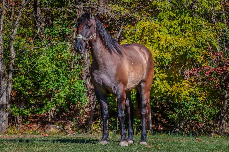 ONLINE AUCTION Place your bids at www.PlatinumEquineAuction.com Starting Bid $3500 Auction ends November 10th, 2024 Need a new saddle? Check out White Rock Saddles on our website or Facebook! This is “LUKE”, a big stout gorgeous PERCHERON QUARTER HORSE CROSSBRED gelding that has been used for ranch work and trail riding. This gelding is handsome, cool, collected, and is the hard to find kind. He stands 16 hands tall and is 7 years old in the prime of his life. He has been ridden in big timber, in the mountains, has been across rivers, and in the deep steep woods. He can carry any size rider all day long. He will ride out alone with no issues. He has been in the arena as well and will lope nice circles and he has a nice soft jog. He will stop nicely on whoa and will back up. He moves off of leg cues and will one hand neck rein. He stands tied, has good ground manners, and gets along well with other horses. He rides low headed and calm. He has been on large rides with many other horses and doesn’t care if he leads the pack or brings up the rear. He is built right, has a good mind, and has lots of outside miles and experience. If you want a big stout GRULLA CROSSBRED with good bone, good feet, and a solid build, check him out. Call HH Horses Erin 304-238-4155 Located in Flemingsburg, KY. ONLINE AUCTION Place your bids at www.PlatinumEquineAuction.com Starting Bid $3500 Auction ends November 10th, 2024 Need a new saddle? Check out White Rock Saddles on our website or Facebook!