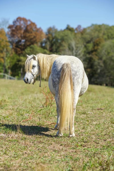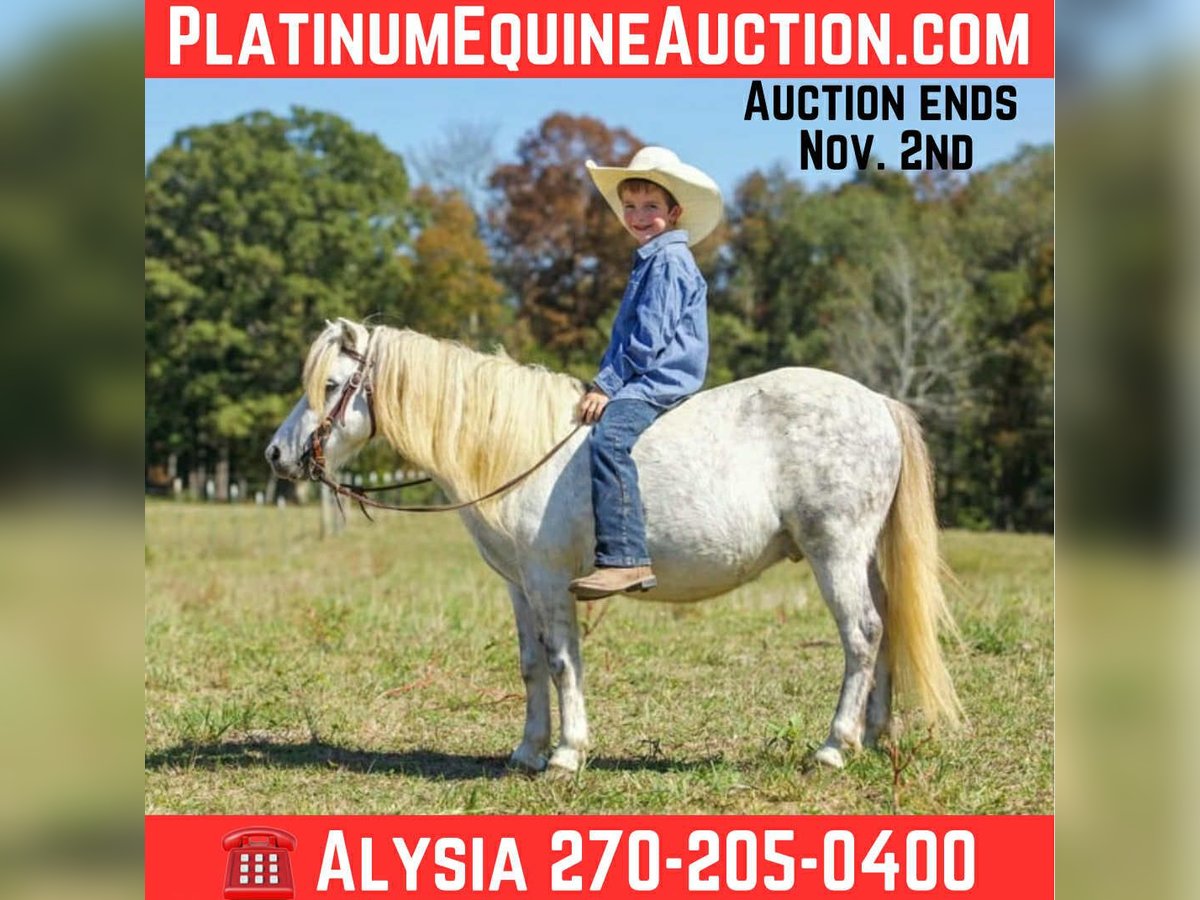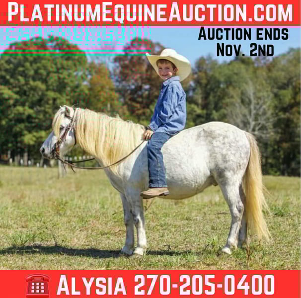 ONLINE AUCTION Place your bids at www.PlatinumEquineAuction.com Starting Bid $3500 Auction ends November 2nd, 2025 Need a new saddle? Check out White Rock Saddles on our website or Facebook Ghost is a once in a lifetime pony. He is an 8 year old grey gelding pony standing at 10.2HH (42 in). He is 100% sound. He has been part of our family for 5 years. He has helped raise our two boys. They’ve decided that its time for another kid to enjoy this special pony. He is the first one to meet you at the gate, loves attention and grooming/bathing. Currently he lives in a pasture with other ponies and horses. Our boys ride him all over the field bareback and bridleless. Ghost has been trail ridden, stood on the tie-line for weekend camping trips, been to horse shows, team ropings, parades and even to church for a petting zoo. When the boy’s friends come over that don’t know how to ride, Ghost is the one we put them on. He rides bareback or in a saddle. We’ve even put pants on him for a Halloween costume. Our boys have used him in barrels and poles. He’s great around cows and has been used to push up roping steers and sort calves. This awesome pony even drives. The kids can drive him around the campground or on the road. Buy with confidence because Ghost is guaranteed in every way. He’s up-to-date on vaccines, stands for farrier and loads easily. Parents if your looking for a pony that is sweet and that will teach your kids, Ghost is your pony. For more info contact: Alysia Conner 270-205-0400 Located in Benton, KY. ONLINE AUCTION Place your bids at www.PlatinumEquineAuction.com Starting Bid $3500 Auction ends November 2nd, 2025 Need a new saddle? Check out White Rock Saddles on our website or Facebook