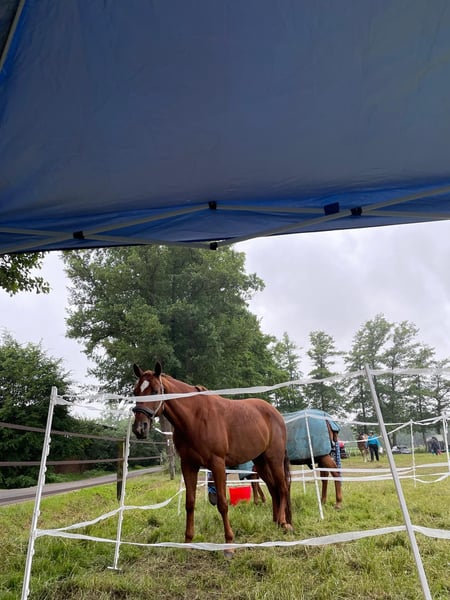 TFR A Blaze Of Glory to przepiękna, duża i poprawnie zbudowana klacz Quarter Horse. Urodziła się w styczniu 2016 roku, ma kolor kasztanowaty i wzrost około 163 cm. Eve to klacz o bardzo przyjaznym charakterze. Jest bardzo towarzyska, uprzejma i ciekawska, a na co dzień zachowuje się spokojnie i bezproblemowo. W obsłudze jest bardzo grzeczna i przyjemna. Eve jest kowalowa i załadunkowa, zaszczepiona i regularnie odrobaczana. Zna zarówno stajnię z paddockiem i pastwiskami, jak i stajnię otwartą, jest bardzo towarzyska i towarzyszy w stadzie. Pod siodłem prezentuje się spokojnie, grzecznie i przyjemnie do jazdy. Ma miękkie, dobre chody i jest bardzo wygodna w siedzeniu. Z łatwością toleruje błędy jeździeckie, dlatego świetnie sprawdzi się również u początkujących jeźdźców. Jednocześnie wykazuje dużą chęć do nauki i talent, co sprawia, że może przynosić wiele radości także ambitnym jeźdźcom. Jest wrażliwa na sygnały i dobrze wyszkolona. Eve posiada bardzo dobre wykształcenie westernowe, była systematycznie trenowana przez instruktorów oraz uczestniczyła w różnych kursach. Odnosiła już sukcesy na pokazach w konkurencjach Ranch Riding, Ranch Rail, Trail, Pleasure i Horsemanship. Rozpoczęto naukę płynnych zmian galopu, choć jeszcze nie są one w pełni pewne. W terenie również zachowuje się spokojnie i bezproblemowo, nawet podczas jazdy solo. W 2020 roku podczas rutynowego badania AKU stwierdzono u niej spadek chrząstki stawu skokowego, jednak do tej pory nie wykazywała żadnych ograniczeń ani kulawizn. Zdjęcia rentgenowskie są dostępne do wglądu. W 2025 roku u obu przednich kopyt zdiagnozowano problem z obręczą kopyta. W związku z tym przeszła terapię komórkami macierzystymi, która przyniosła bardzo dobre efekty i od tego czasu jest wolna od kulawizn. Według weterynarza, kowala i trenera jest obecnie w 100% zdolna do obciążenia. Z przodu jest poddawana specjalnemu obciążeniu, z tyłu jest na naturalnym, nieobciążonym kopycie. Dostępne są zdjęcia rentgenowskie oraz wyniki AKU. Eve to świetne konie dla ambitnego jeźdźca, który nie zniechęci się jej diagnozą i chce dalej z nią pracować. Niezależnie od tego, czy jako startujący na zawody, czy jako niezawodny partner rekreacyjny – to po prostu kochany koń.