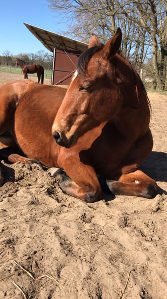 Quarter Horse merrie „Störni“ – Hart van goud, betrouwbare partner & prachtig foktsperspectief 11 jaar | ongeveer 1,45 m | momenteel volledig bereden | locatie: Fehrbellin Mijn betoverende Quarter Horse merrie „Störni“ zoekt vanwege gebrek aan tijd een nieuw thuis waar haar enorme hart, rijvaardigheid en bijzondere uitstraling net zo gewaardeerd worden als door mij. Ondanks haar compacte bouw dekt ze uitstekend en geeft ze een prettig, fijn en altijd veilig rijgevoel. Störni werd als vierjarige aangezadeld en overtuigt sindsdien met zuivere, expressieve gangen. Of het nu binnen, op de piste of buiten is – ze is altijd gemotiveerd, inzetbaar en toont zich buiten bijzonder zeker, nervenbestendig en maakt gewoon plezier. Je voelt je meteen op je gemak als je op haar zit. Ook op concours is ze een echte rots: koel, betrouwbaar en zelfverzekerd, ongeacht de omgeving die haar te wachten staat. In 2023 heeft ze een prachtig hengstveulentje gekregen en zich bewezen als een liefdevolle en instinctieve moeder. Door haar afstamming blijft ze ook voor de fokkerij zeer interessant. Na haar kraamrust is ze voorzichtig weer getraind en momenteel volledig bereden in Fehrbellin. Naast haar prestaties heeft Störni ook een ongelooflijk lief karakter: Ze is knuffelig, mensgericht en geniet van elke aandacht van haar eigenaar. Als je de paddock betreedt, wijkt ze meestal niet van je zijde ♥️ Optioneel kan haar passende uitrusting (incl. Gomeier-zadel, 5-Star Pad, Bucas-dekens etc.) worden overgenomen. Prijs inclusief uitrusting: €20.000 VB Bij serieuze interesse stuur ik graag foto’s en video’s.