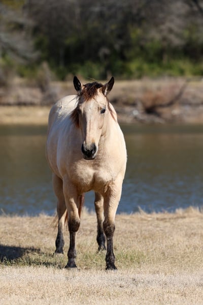 Habe ich erwähnt, wie atemberaubend sie ist? Sie ist eine wunderschöne, kräftige Buckskin mit großen Dapples (unter ihrem Winterfell). Es ist kein Aufwärmen vor dem Reiten nötig. Man kann direkt aus dem Paddock aufsteigen und losreiten. Sie ist wirklich ein Pferd fürs Leben.