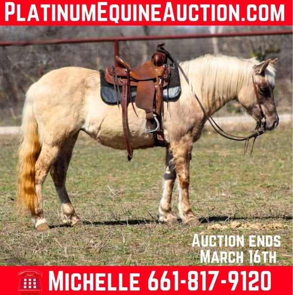 ONLINE AUCTION Place your bids at www.PlatinumEquineAuction.com Starting Bid $3500 Auction ends March 16th, 2025 Need a new saddle? Check out White Rock Saddles on our website or Facebook! Meet Jelly Bean, the adorable pony who’s sure to steal your heart! This sweet 13-year-old silver dapple mare stands at a perfect 12 hands tall, making her the ideal companion for your little cowboys and cowgirls. If you’re searching for a gentle “baby sitter” pony, look no further—Jelly Bean is the one! Over the years, she has guided countless kids on their riding journeys, helping them build confidence while having a blast. Whether it’s for lead line rides or letting your little ones take the reins, Jelly Bean is always there to keep them safe. She doesn’t require kicking to get moving, which is fantastic for those just starting out—no more frustration, just fun! Jelly Bean is incredibly forgiving and responds beautifully to her rider’s cues. If she senses a little one is about to lose their balance, she stops right in her tracks, just like a good pony should! She’s been a cherished part of family outings, rodeos, and ranch adventures, ensuring kids are entertained all day long. Imagine your child riding alongside dad, gathering cows or goats with ease! This amazing pony is just as comfortable on trails as she is at home. She navigates bridges, logs, and water without a hitch, and going up and down hills is a breeze for her. Jelly Bean is truly a “been there, done that” kind of pony! She’s not just a joy to ride; she’s also a sweetheart on the ground. Jelly Bean eagerly drops her head for the kids to put her halter on, stands patiently for grooming, and is a pro at being saddled and bridled. When it’s time to hit the road, she loads up easily and travels like a champ. There’s no doubt that one lucky child is going to be over the moon to welcome Jelly Bean into their life. Ponies like her are hard to find, and she’s ready to bring joy and adventure to a new family! Don’t miss out on the chance to make unforgettable memories with this special girl! Contact us to come try her, or we can set up a FaceTime also . Call M $ Performance Horses Michelle 661-817-9120 If you need help with transport don’t hesitate to ask we have a list of reputable haulers that can get her safely to your doorstep WORLD WIDE including, Alaska , Mexico, Hawaii and Canada. ONLINE AUCTION Place your bids at www.PlatinumEquineAuction.com Starting Bid $3500 Auction ends March 16th, 2025 Need a new saddle? Check out White Rock Saddles on our website or Facebook!