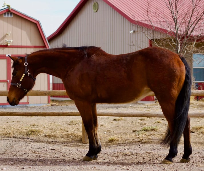 "AVAILABLE ON ONLINE HORSE AUCTION AT www DOT PlatinumEquineAuction DOT com BIDDING OPEN NOW thru SUNDAY | APRIL 19TH! *Final price will be determined on auction site* CONSIGNOR CONTACT INFO: Natalie Swaney 559-760-4777 LOCATION: Fort Collins, CO Meet Petunia, a stunning 15 year old bay mare with a kind gentle personality everyone is searching for these days. Petunia is the definition of “been there, done that.” She is safe, steady, and trustworthy, making her an ideal partner for kids and beginners. Whether it’s a quiet day in the arena or a relaxing trail ride, she takes everything in stride with a calm and willing attitude. She is not spooky. She crosses water, bridges, goes under tunnels and is traffic safe. She rides English and western and has primarily been ridden by kids in our lesson program. She is sound with no maintenance. Barefoot and an easy keeper. Petunia is easy to catch (she’ll meet you at the gate), and easy to be around both in and out of the saddle. Petunia has excellent ground manners, stands good for grooming and tacking, and truly enjoys attention. Her sweet personality makes her a barn favorite and a joy to have in the program. If you’re looking for a beautiful, dependable mare that will take care of her rider and bring confidence every ride, Petunia is your girl. For more Information, contact Natalie at 559-760-4777